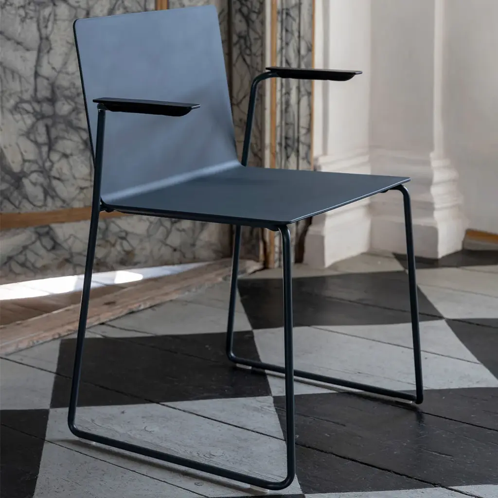 Dry is a stylish chair with excellent seating comfort and its soft-touch surface contributes to good room acoustics. Dry chair has a minimalistic appearance that makes it fit in almost everywhere. As it is light and stackable, both with and without armrests, it can be used in almost all situations. Dry has a minimalistic and "quiet" expression and can therefore easily be used match all architectural surroundings without disturbing and without to attract too much attention. The secret of its high comfort lies in the flexible polyurethane shell. The straight and flat looking shell surprisingly adapts to the shape of the body providing both support and comfort. Its soft-touch surface also contributes to good room acoustics and Drys minimalistic expression can easily match any architectural surroundings. The shell in its final form is carefully hand finished by talented craftsmen.