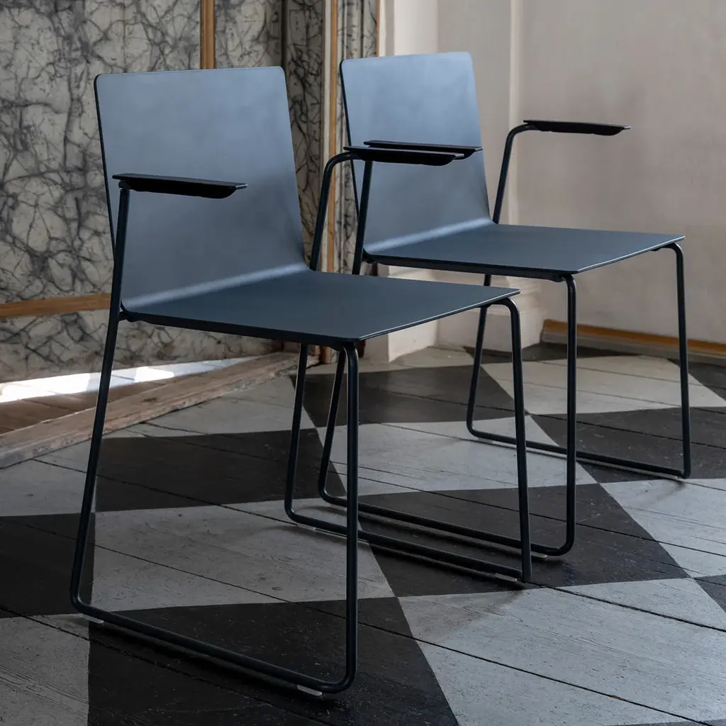 Dry is a stylish chair with excellent seating comfort and its soft-touch surface contributes to good room acoustics. Dry chair has a minimalistic appearance that makes it fit in almost everywhere. As it is light and stackable, both with and without armrests, it can be used in almost all situations. Dry has a minimalistic and "quiet" expression and can therefore easily be used match all architectural surroundings without disturbing and without to attract too much attention. The secret of its high comfort lies in the flexible polyurethane shell. The straight and flat looking shell surprisingly adapts to the shape of the body providing both support and comfort. Its soft-touch surface also contributes to good room acoustics and Drys minimalistic expression can easily match any architectural surroundings. The shell in its final form is carefully hand finished by talented craftsmen.