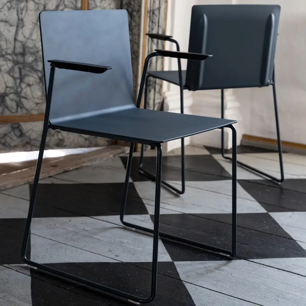 Dry is a stylish chair with excellent seating comfort and its soft-touch surface contributes to good room acoustics. Dry chair has a minimalistic appearance that makes it fit in almost everywhere. As it is light and stackable, both with and without armrests, it can be used in almost all situations. Dry has a minimalistic and "quiet" expression and can therefore easily be used match all architectural surroundings without disturbing and without to attract too much attention. The secret of its high comfort lies in the flexible polyurethane shell. The straight and flat looking shell surprisingly adapts to the shape of the body providing both support and comfort. Its soft-touch surface also contributes to good room acoustics and Drys minimalistic expression can easily match any architectural surroundings. The shell in its final form is carefully hand finished by talented craftsmen.