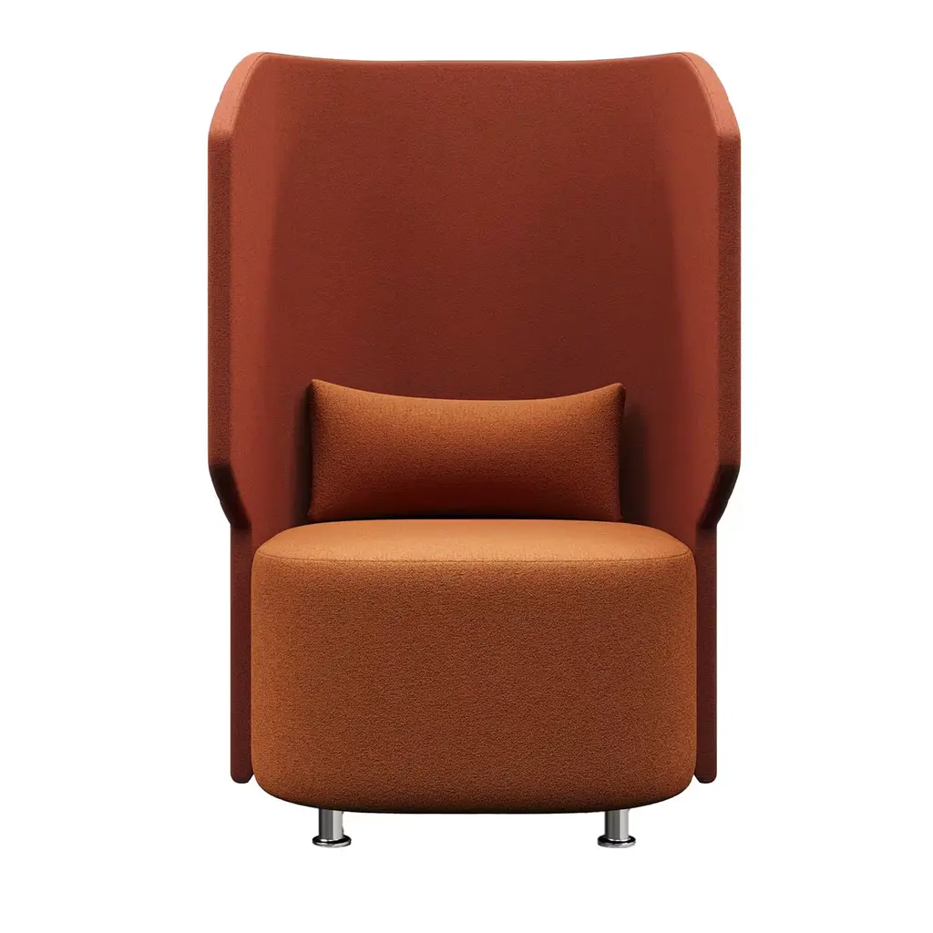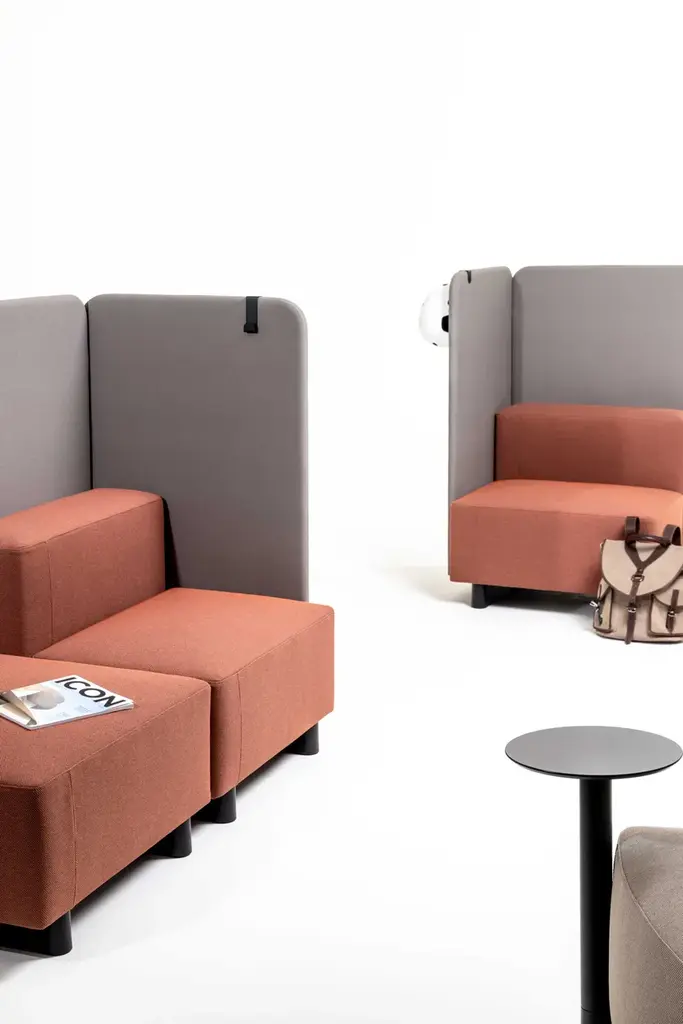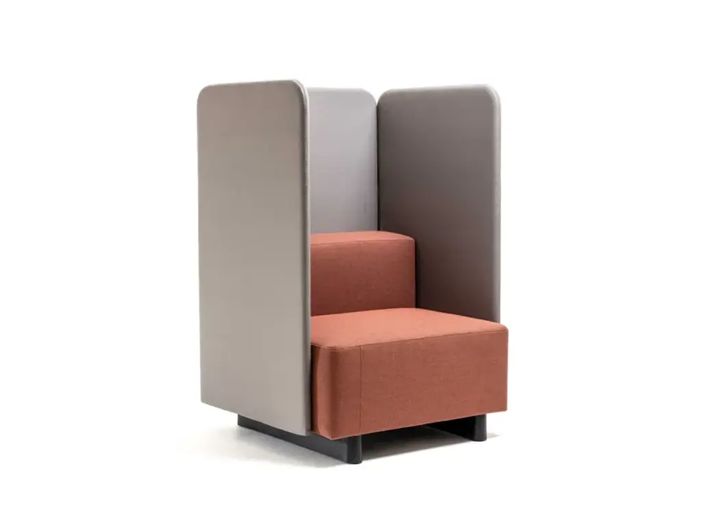 Dual si a single-seat unit with backrest, upholstered, recycled polypropylene base, adjustable polypropylene feet, with a set of 3 upholstered panels: rear, right side, and left side.