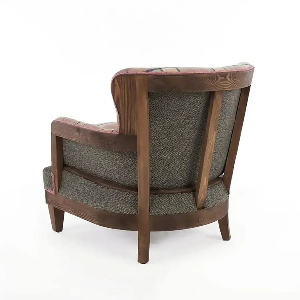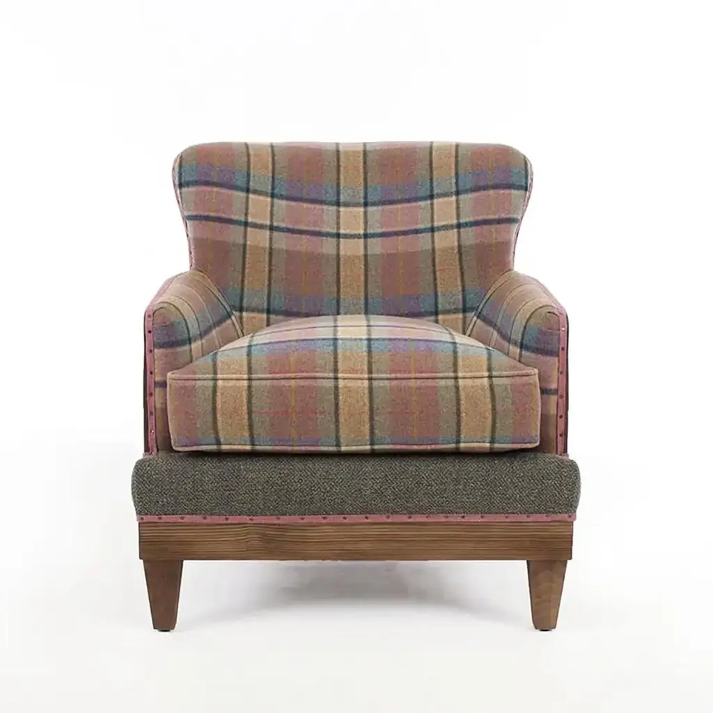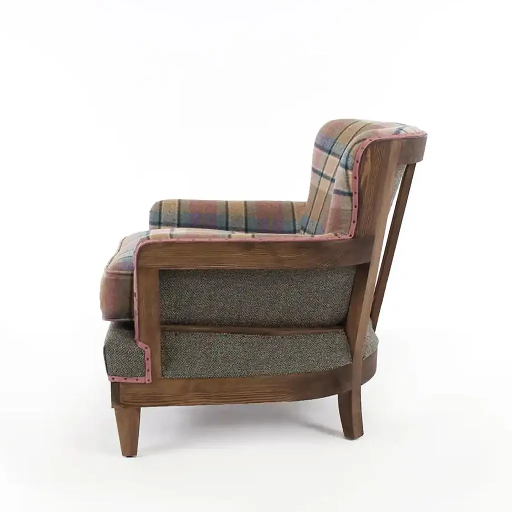 Armchair Dundee with scottish fabric in woolwith structure in solid wood. Upholstered and covered with high quality wooly fabric. Totally handmade piece.Also available with other fabrics colors on request.