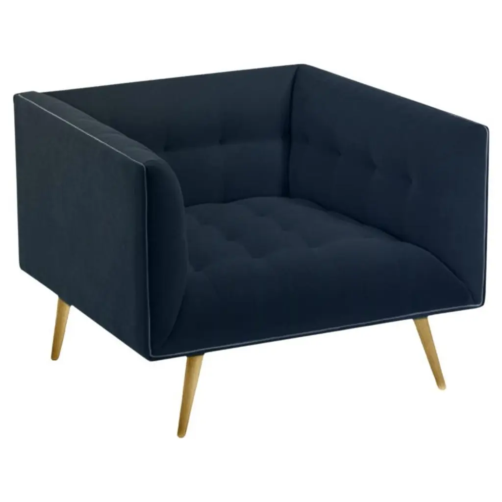 The Dust Armchair is constructed in solid wood, with an elevated tufted elegant look and a comfortable seating. Handmade with a solid wood base and wood legs. Polished brass metal feet detail is available as an option.The Dust Armchair is available in a number of different materials, finishes and combinations.Wood finish and upholstery can be fully customizedCOM Available : Upholstery 5 yards, piping 0.7 yardsMaterialUpholstery : Velvet Fabric, Boucle Fabric, COMWood legs : Solid Wood baseMetal foot detail (on demand)DimensionsW 31” x D 35” x H 27” - Seat height 16”Pictured inSmooth 60, Smooth Shell Pipping, Beech 056-3 Solid Wood Feet