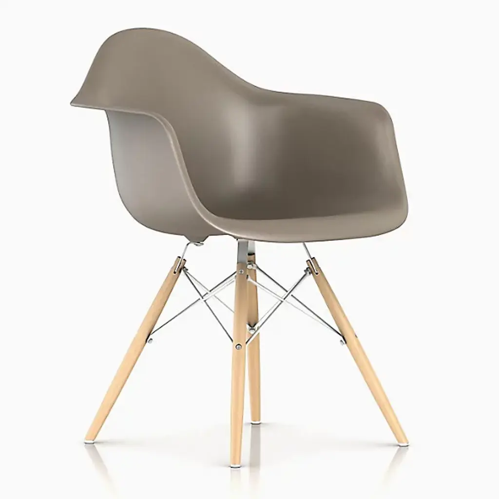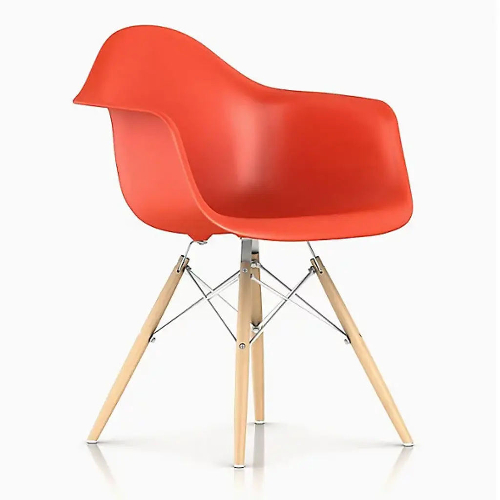 Designed by Charles and Ray Eames in 1950, the Eames® Molded Plastic Armchair – Dowel Base by Herman Miller is truly timeless. This contemporary piece oozes sophistication with its seat crafted from a single piece of molded plastic with arms and waterfall edges. Eames handsome dowel base is completed in the finish of your choice while 85% of the chair is recyclable at the end of its long life. Choose the shell color that fits your home or office best.