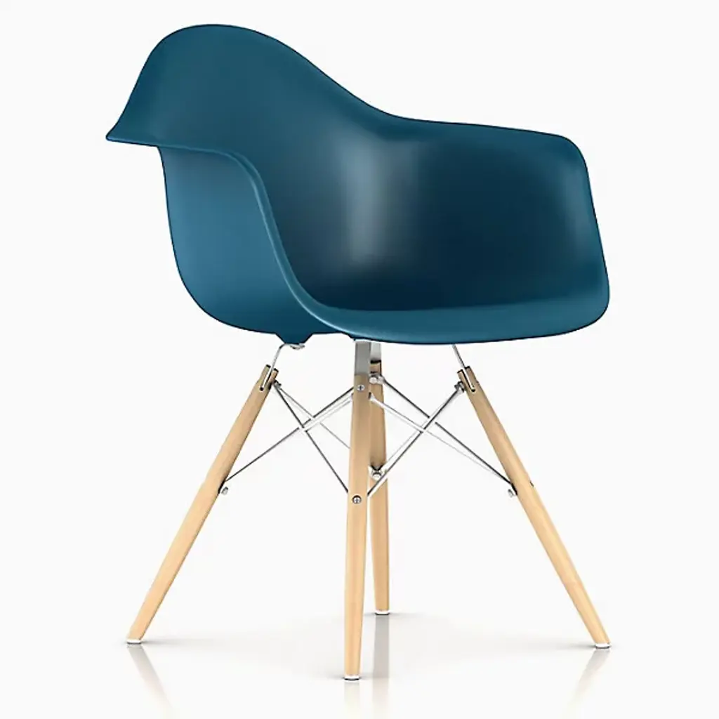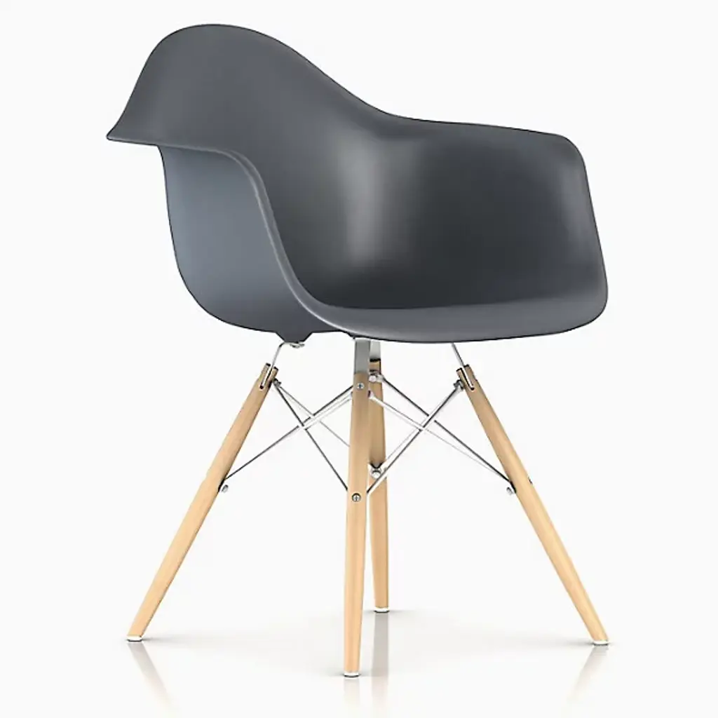 Designed by Charles and Ray Eames in 1950, the Eames® Molded Plastic Armchair – Dowel Base by Herman Miller is truly timeless. This contemporary piece oozes sophistication with its seat crafted from a single piece of molded plastic with arms and waterfall edges. Eames handsome dowel base is completed in the finish of your choice while 85% of the chair is recyclable at the end of its long life. Choose the shell color that fits your home or office best.