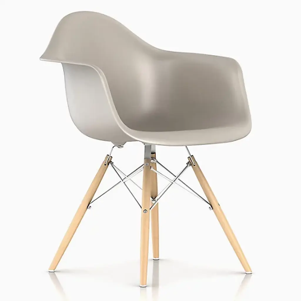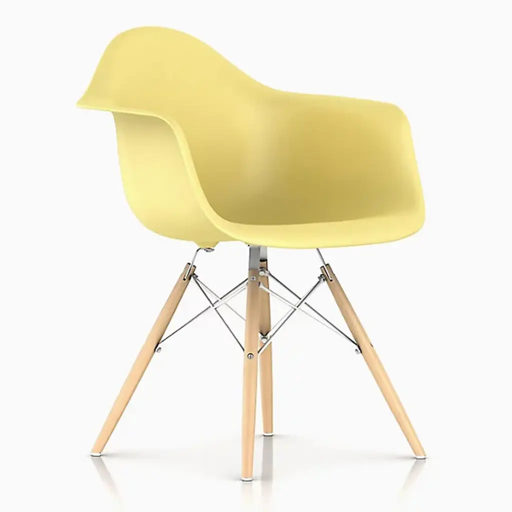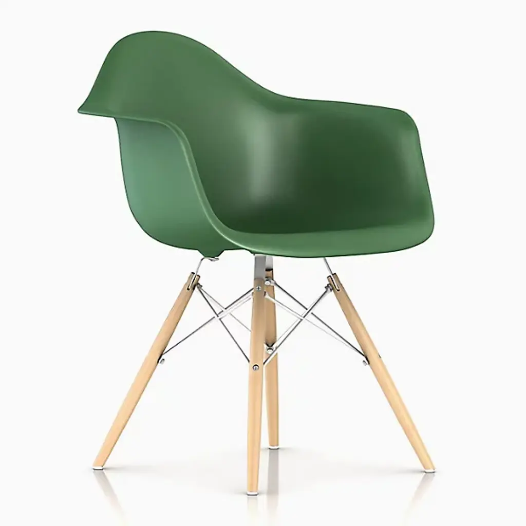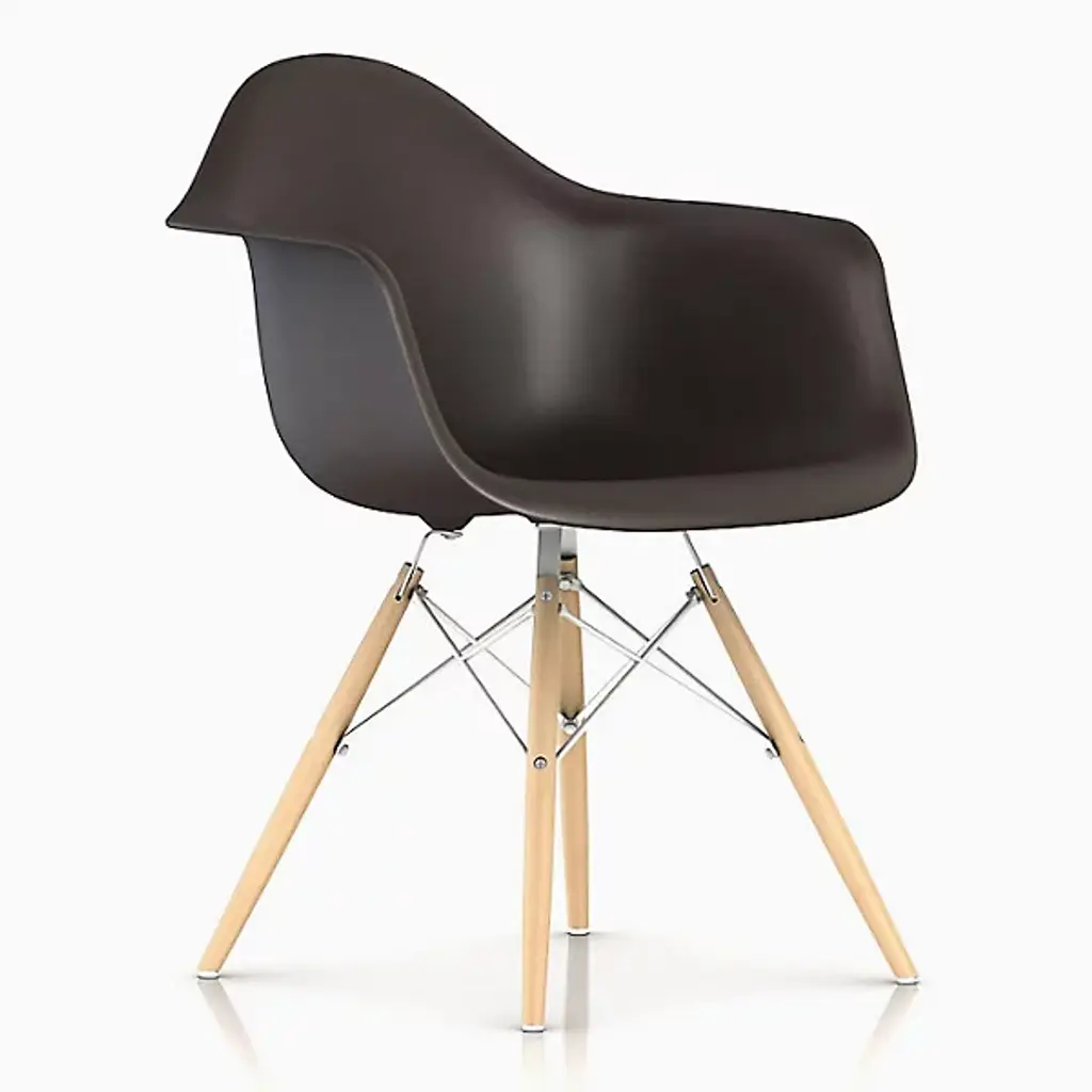 Designed by Charles and Ray Eames in 1950, the Eames® Molded Plastic Armchair – Dowel Base by Herman Miller is truly timeless. This contemporary piece oozes sophistication with its seat crafted from a single piece of molded plastic with arms and waterfall edges. Eames handsome dowel base is completed in the finish of your choice while 85% of the chair is recyclable at the end of its long life. Choose the shell color that fits your home or office best.