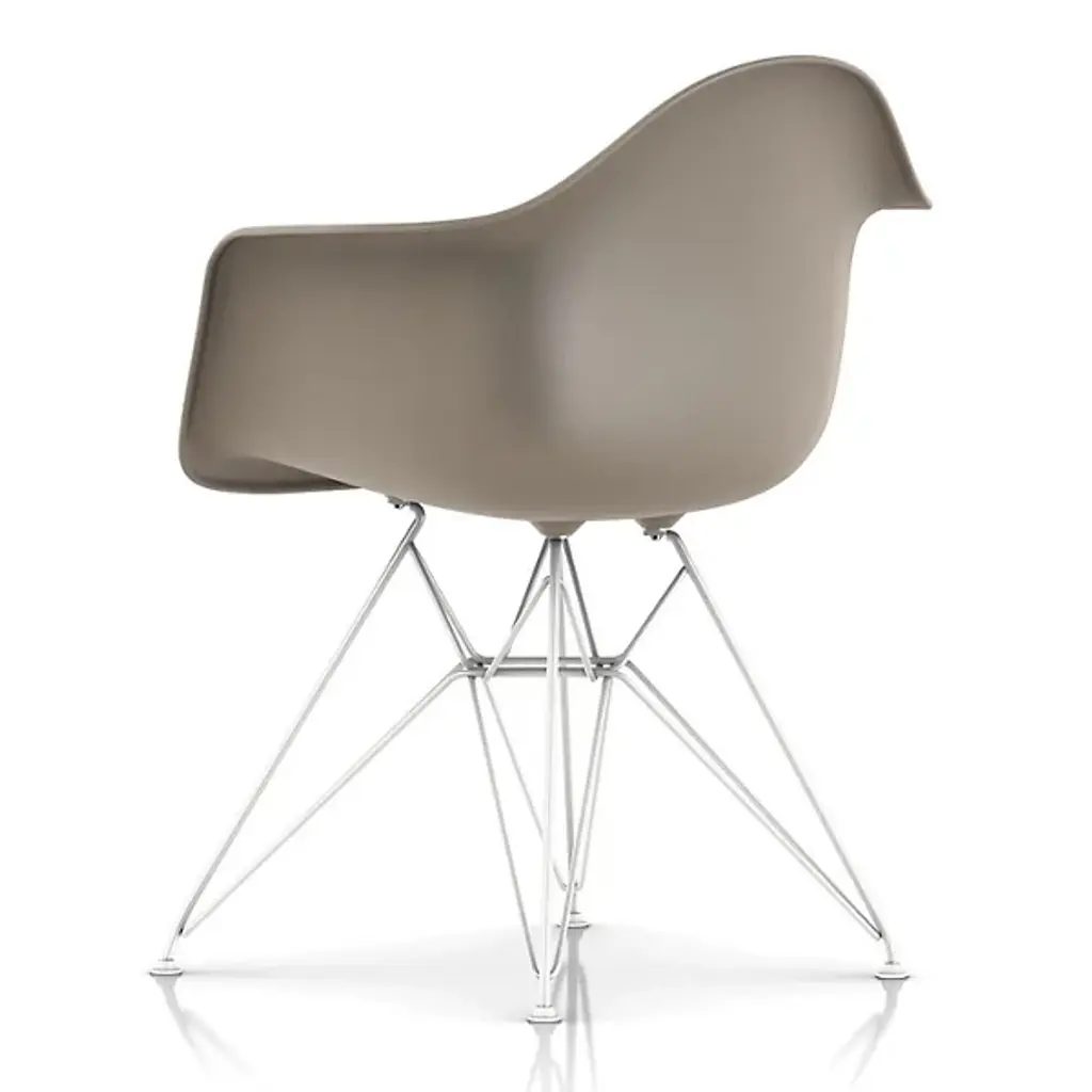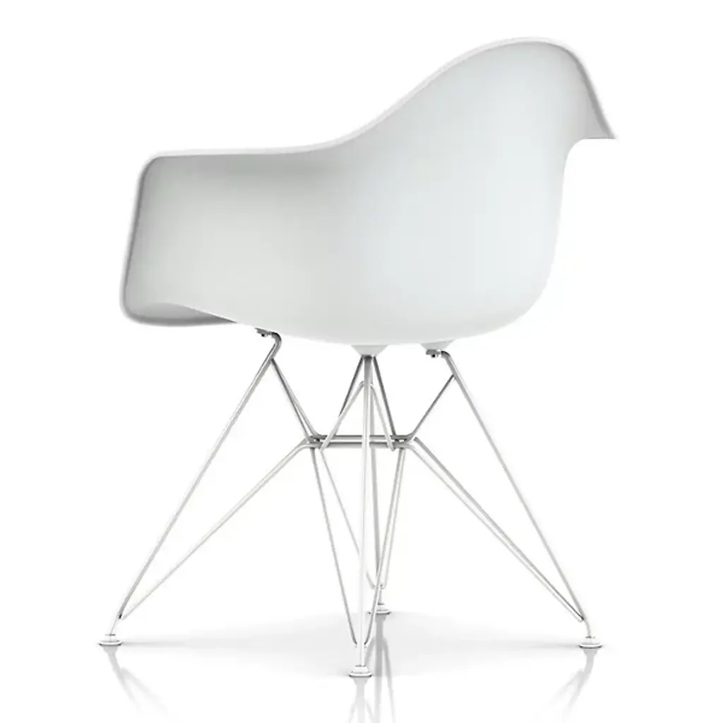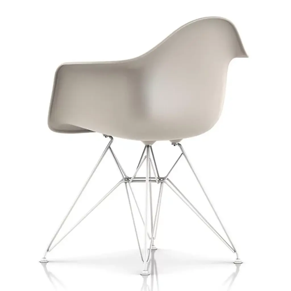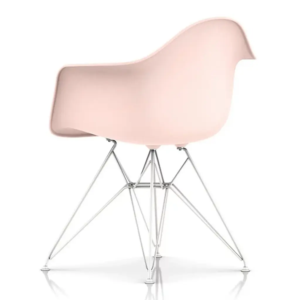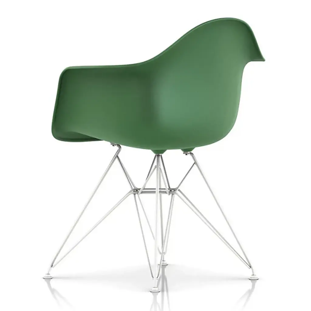 Enhance modern interiors with the clever, curving comfort of the Eames Molded Plastic Armchair - Wire Base from Herman Miller. A stately update to the storied classic, its single-piece seat is sculpted to fit the physical form with the traditional Herman Miller flair, supporting the physical form while resting atop a robust wire frame that brings a complex, Eiffel-like airiness to its character. Each seat is constructed entirely from recycled materials, the soft curves contrasting well with the angular presence of the frame, creating an enduring and involved elegance that still offers outstanding support.