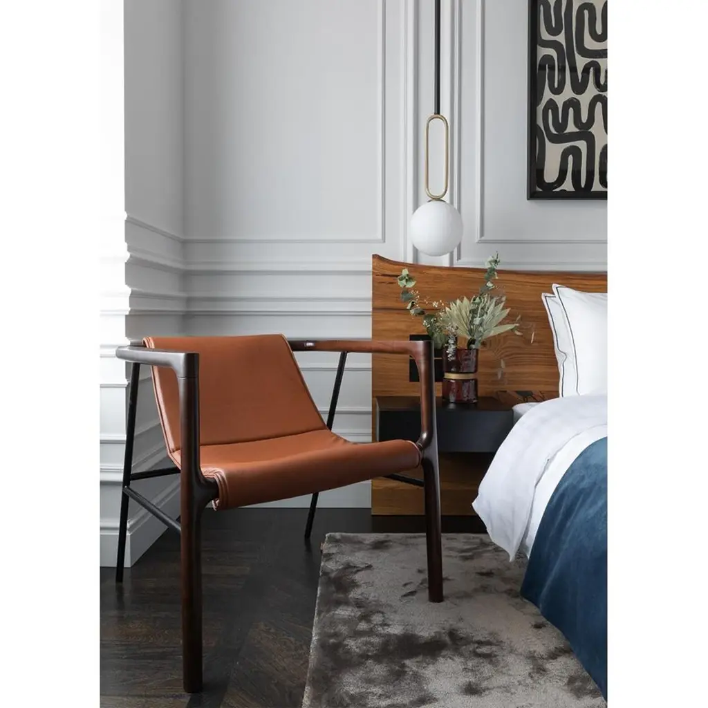 Elliot armchair by CollectorMaterials: Solid oak wood armrests.Black Lacquerd Metal frame structure. Uphostered in genuine Sequoia 4001 leather.Dimensions: W 85 x D 75 x H 72 cm, SH 44 cm Depending on the material the price may vary.With solid and curved wooden armrests, this structure blends with a metal frame that adds character to the design. Alone or in pairs, covered in leather or fabric, is the perfect complement for any sofa.The Collector brand aims to be part of the daily life by fusing furniture to our home routine and lifestyle, that’s why we’ve designed our pieces with the intention to embrace diverse styles and to blend in inside anycontemporary setting.Described by our motto: “built to fit a good IDEA.”, this wide range of product typologies were designed to work in diverse layers of importance. It can work as a center piece of the house, with strong personality or just complementing the background by gently blending in. The result is a clean-lined furnishing collection that can easily be customized to work specifically and according to each unique need, reflecting essentially our traditional methods of furniture manufacturing with accurate Industrial Production methods.We strive to achieve the best quality possible by selecting the best materials and by the constant development of our production processes and manufacturing partnerships.
