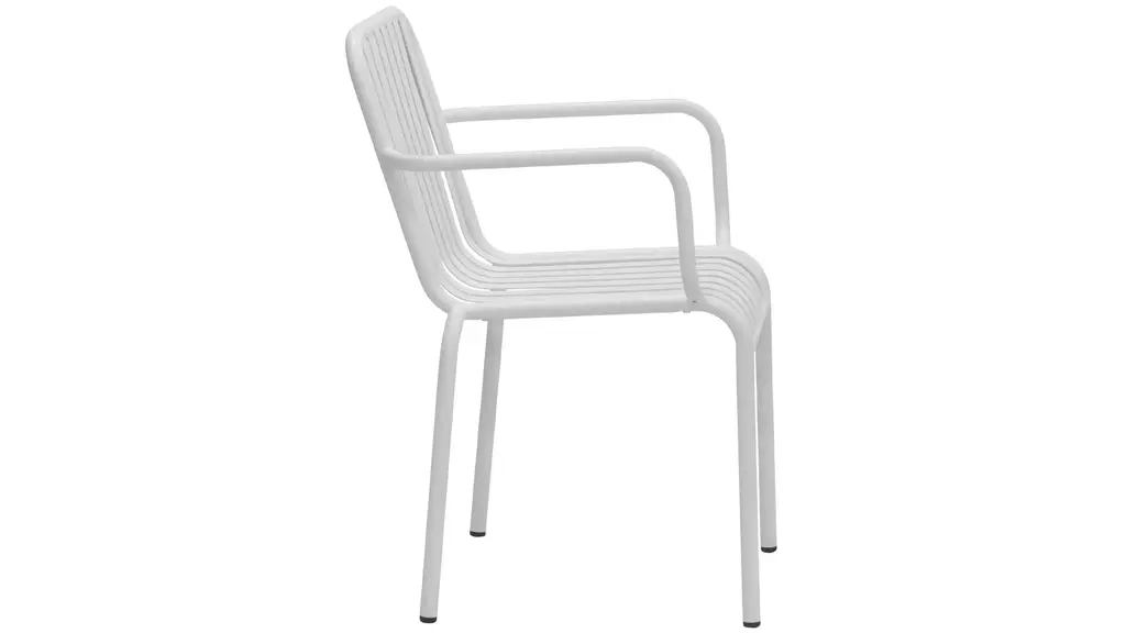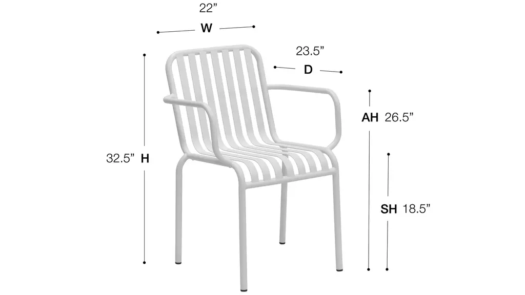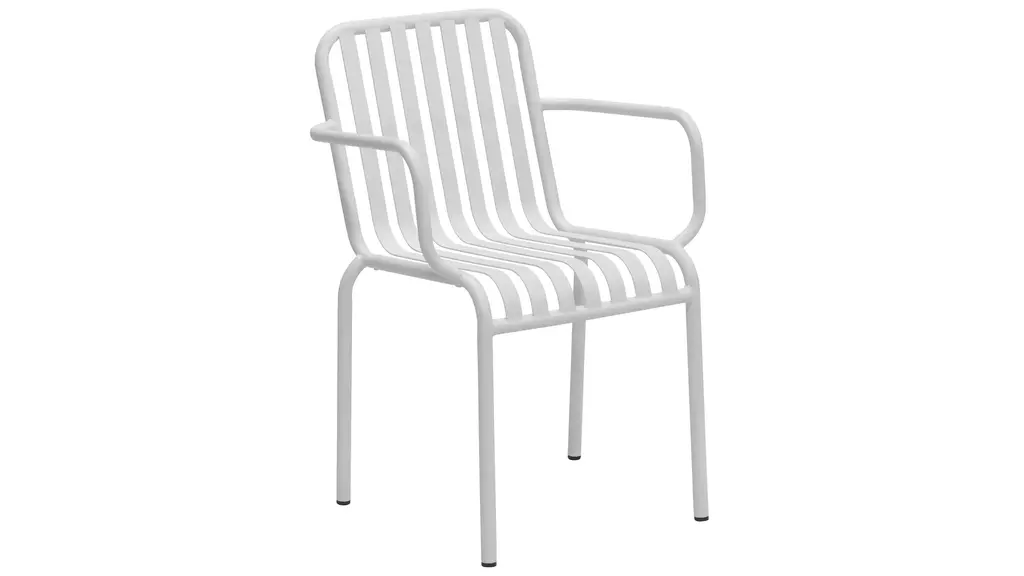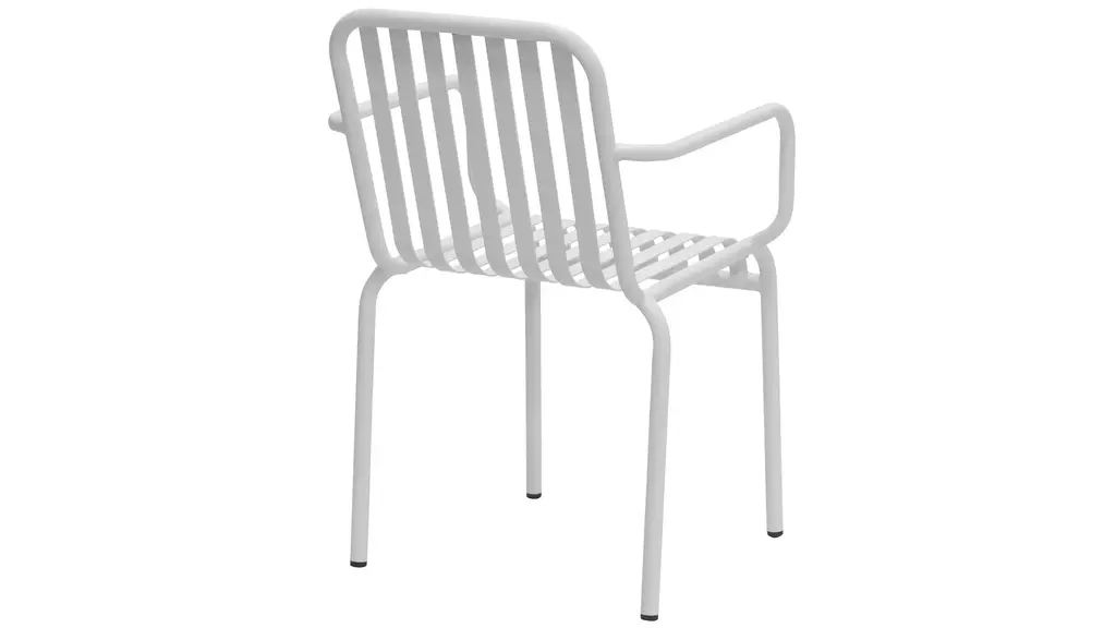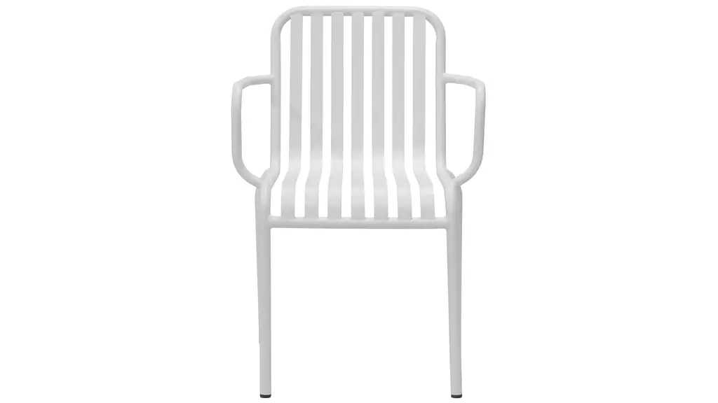 The Enid Outdoor Armchair -Set of 2, with its exquisite slat design and gleaming surface, makes a great look on your patio, in your garden, or anywhere else indoors or out. Made of powder-coated steel, this armchair is rust, corrosion, and water-resistant for long-lasting use.