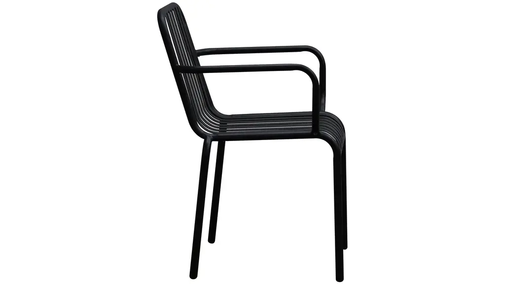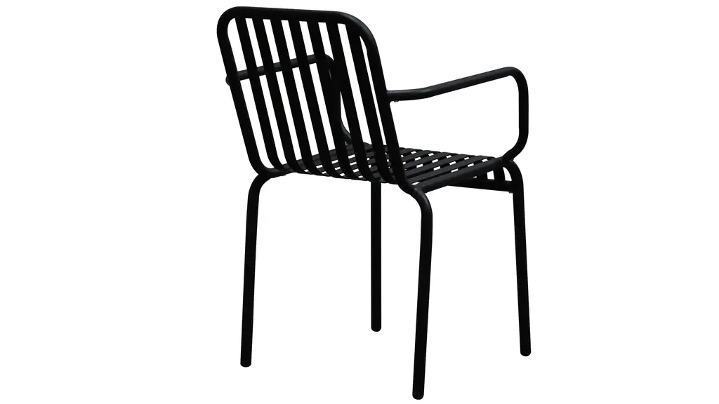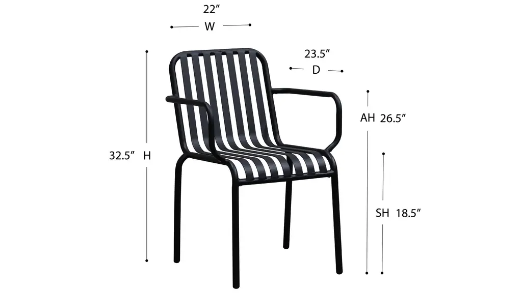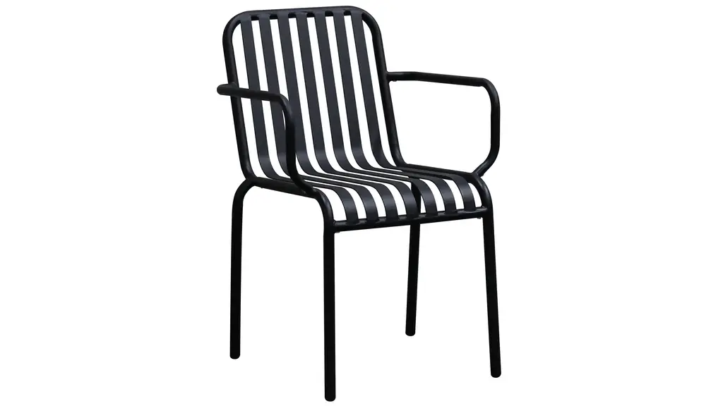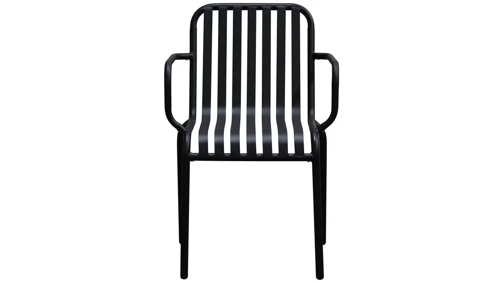The Enid Outdoor Armchair -Set of 2, with its exquisite slat design and gleaming surface, makes a great look on your patio, in your garden, or anywhere else indoors or out. Made of powder-coated steel, this armchair is rust, corrosion, and water-resistant for long-lasting use.