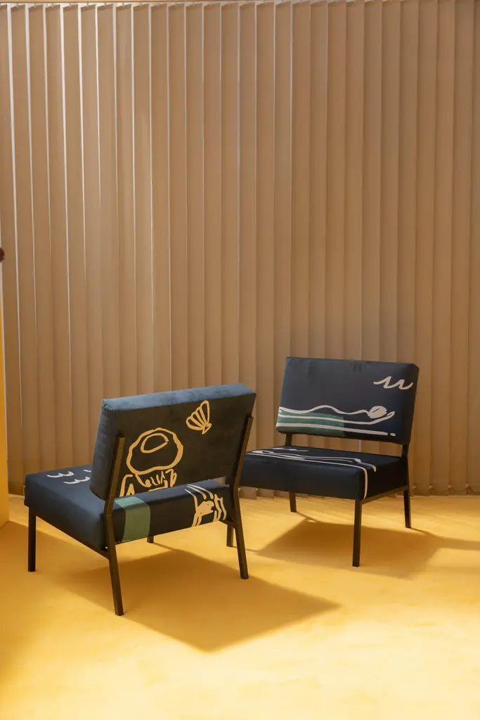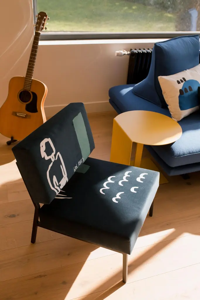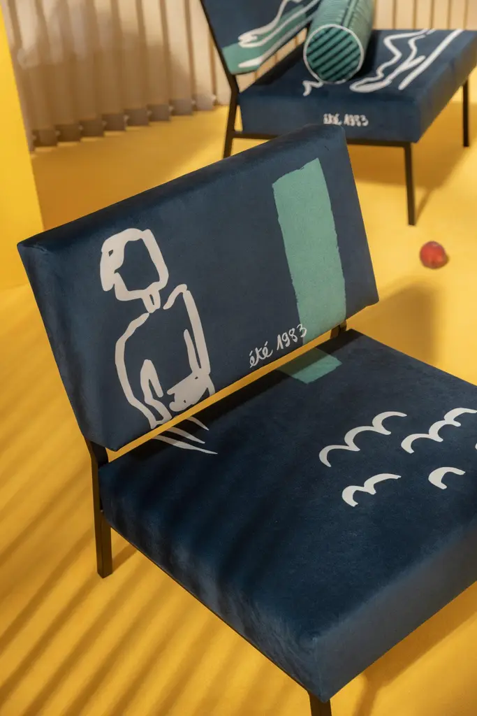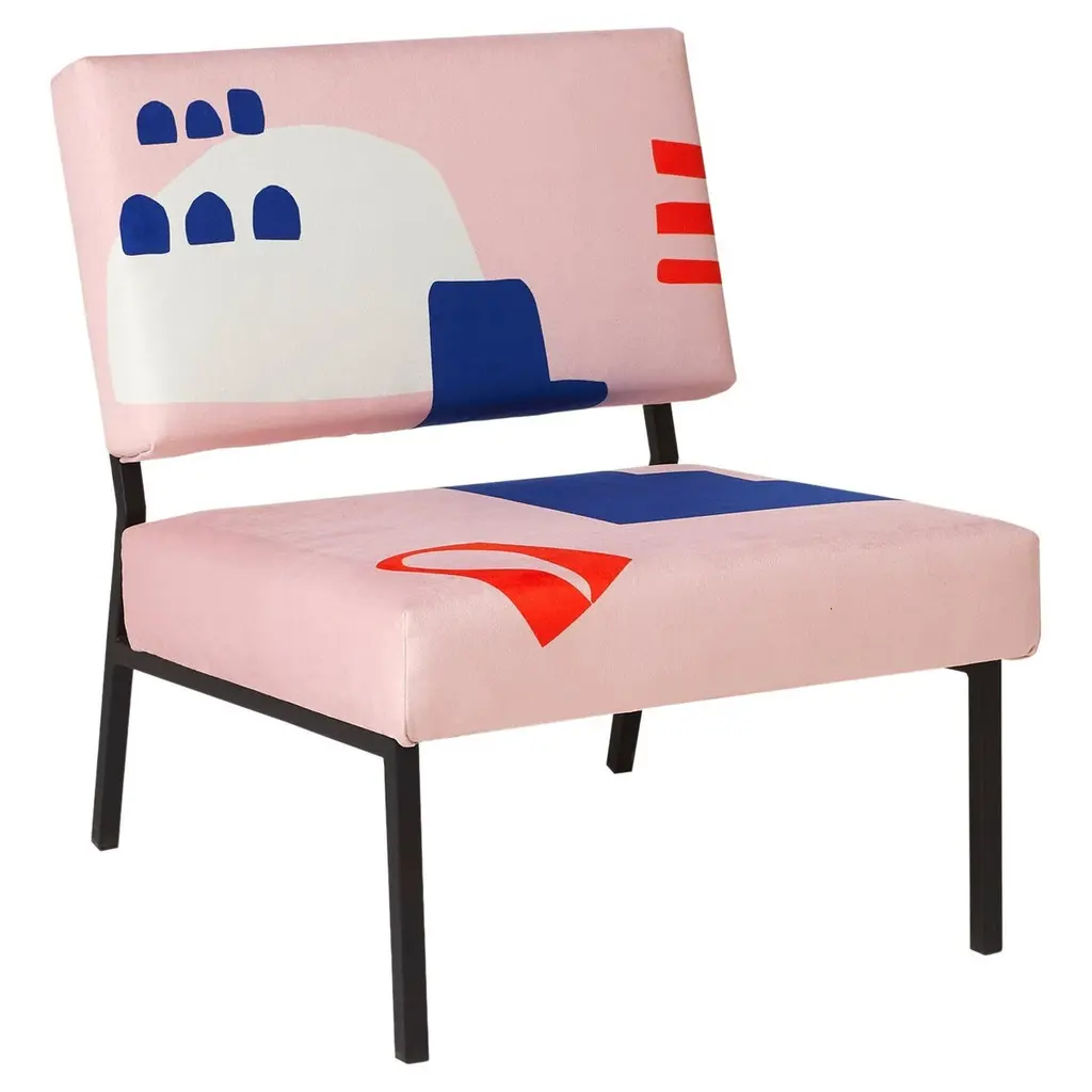 Eté 83 Tom O2 armchair by Babel BruneDimensions: D 63 x W 54 x H 67 cm, Seat H 35 cm.Material: Suede velvet 380g / m², steel.The O2 Tom armchair from Eté 83 collection is an ode to the languid warmth of Italian summers. A sweet nostalgia for borrowed rhythms and cozy atmospheres.It gives prominence to Indian ink and stencil drawing techniques to offer a rich interplay of textures highlighted by deep colors and our now signature velvet suede.The O2 Tom armchair will go wonderfully with the O2 Sara armchair from the same Eté 83 collection or the O2 Elios green & blue armchair.The Armchair 02 brings together the expertise of several trades, all located around Lille, France. The textile artworks and patterns are all exclusive to Babel Brune, imagined and developed in-house, with the invaluable help of our partner textile designers.Babel Brune was created by Clémence Barker Canler. For the past ten years, she has traveled across Asia to develop new products and source decor and furniture for the European market. From the cabinetmaking workshops in Rajasthan or the Bali's textile workshops, she explores the materials and craftsmanship for which she is a passionate. Returning to Europe, she opens her eyes to what she had not learned to appreciate before these experiences. She relearns to observe, to be inspired, and becomes a real sponge to all this aesthetics that makes her vibrate.Until that creativity becomes too pressing not to be addressed. She had to find a way to welcome this creative bubbling and respond to its deep convictions. She dreams of new modes of consumption, alternatives to the classic circuits for selling furniture in Europe based on imports. This is how Babel Brune was born. By creating objects of character, combining craftsmanship and artistic inspiration, it relies on its operational expertise to express its creativity in an assertive and uninhibited way and participate in the creation of new modes of consumption.At Babel Brune we have a particular knowledge, that of adapting to the expertise, know-how and artistic sensibilities that surround us on each project. Each trade having its respective constraints, we are building a common language capable of transcending them to, together, create beauty. In this sense, Babel Brune echoes the Myth of the Tower of Babel.