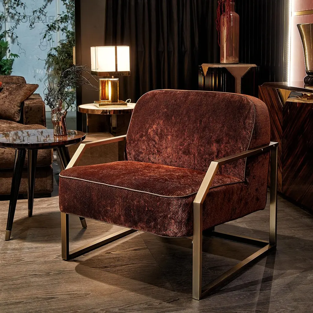 Create a sumptuous lounge atmosphere in a contemporary space with the Evie armchair. On a Minimalist base with a bronze finish, the chair is characterized by its deep and wide seat, inviting you in for a cozy evening. The plush armchair can be personalized with a variety of upholsteries to suit any home.
