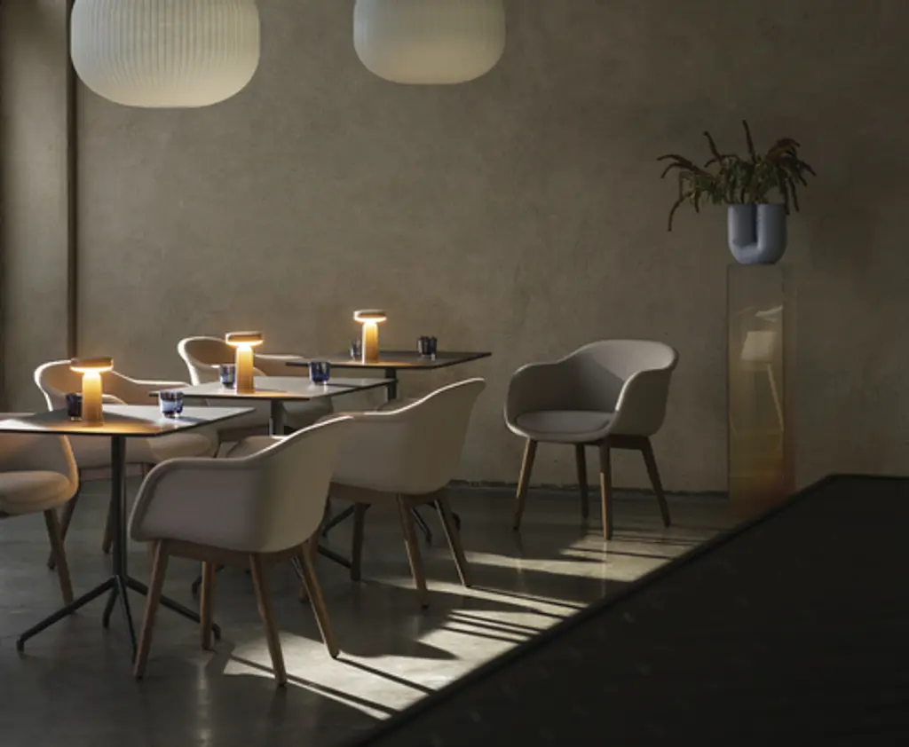 A sculptural yet distinctly ergonomic seat makes the Fiber Conference Armchair ideal anywhere we spend an extended time seated. Its interior shell is made using 100% recycled plastic, while its spacious seat and embracing curves are fully upholstered with a soft fixed cushion, providing maximum comfort in public spaces and the home alike.