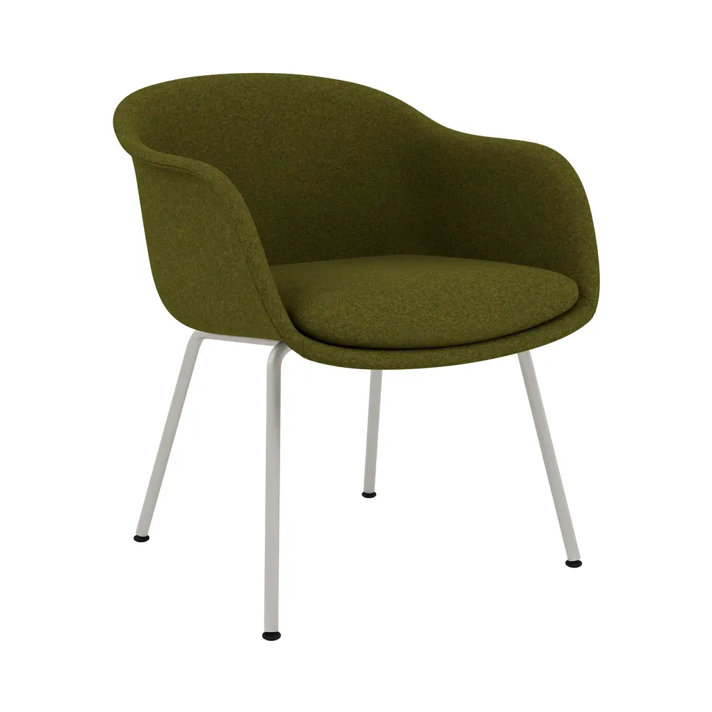 In a fully upholstered version, Fiber Conference’s clear sculptural language offers comfort for hours on end, with the clean-lined complement of a tube base in powder-coated or chromed steel. Bringing a new perspective to the iconic molded chair, the inner shell is made from an innovative composite of 100% recycled plastic and wood fibers.