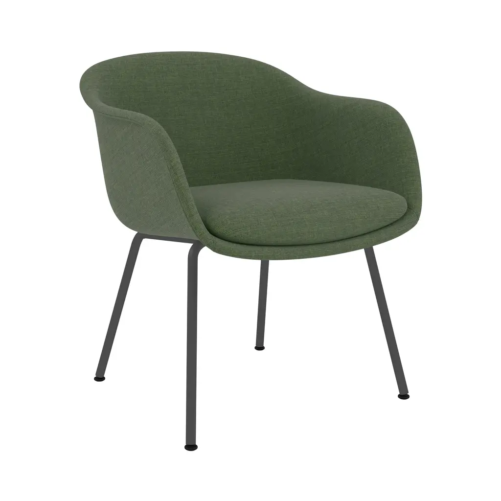 In a fully upholstered version, Fiber Conference’s clear sculptural language offers comfort for hours on end, with the clean-lined complement of a tube base in powder-coated or chromed steel. Bringing a new perspective to the iconic molded chair, the inner shell is made from an innovative composite of 100% recycled plastic and wood fibers.