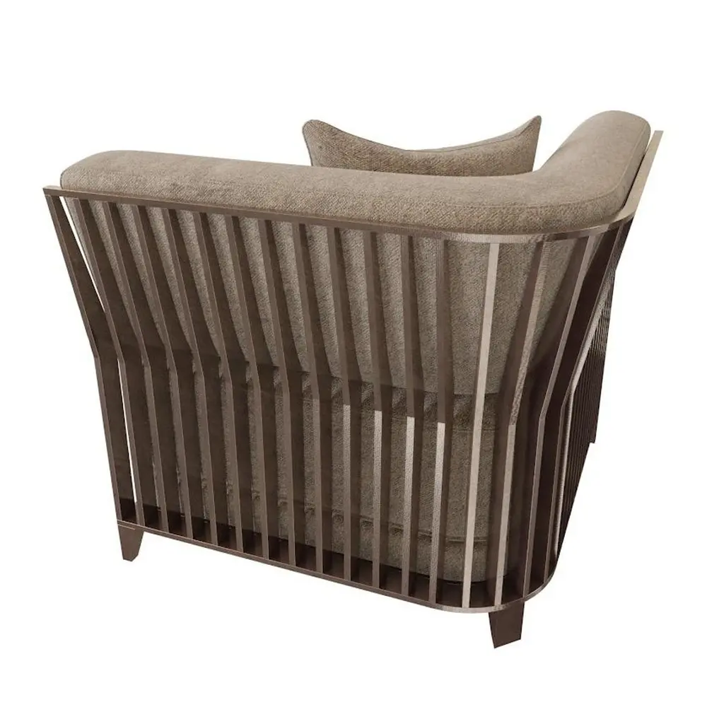 Fleurus Armchair by Hugues ChevalierThe Fleurus armchair is a statement piece with a unique design, seamlessly blending luxury and elegance. It can be arranged in six different compositions with the Fleurus sofa, offering versatility in any living space.The seat cushions and backrest are available in leather or fabric, ensuring a high level of comfort and sophistication. The metal structure features a refined bronze finish, adding a touch of timeless charm to the design.We offer this armchair in various fabric colors to suit your personal style and interior décor.Price does not include fabric.For more details or fabric options, please contact us.