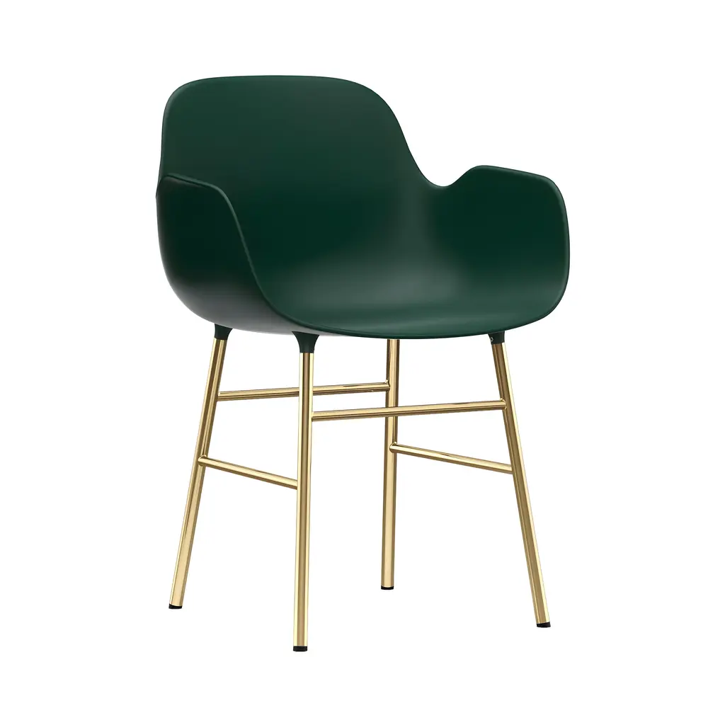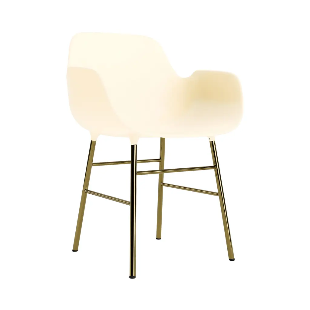 Gleaming brass legs put a shine on the armchair version of the signature Form seating collection by Danish designer Simon Legald for Normann Copenhagen. Steel legs. are paired with the highly comfortable, seamless polypropylene shell seat—which underwent 20 prototypes over the course of 3 years. "I had an idea of what the ideal chair should look like," says Simon. And he got it right.