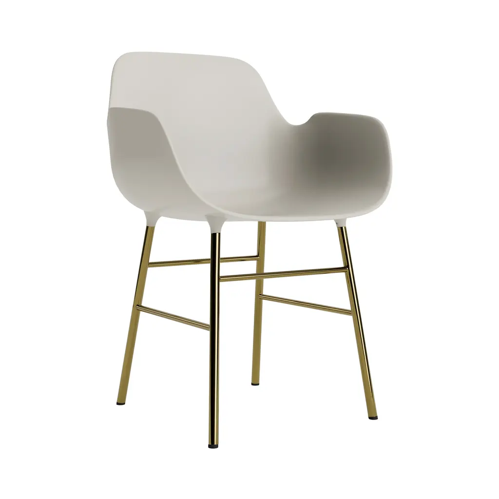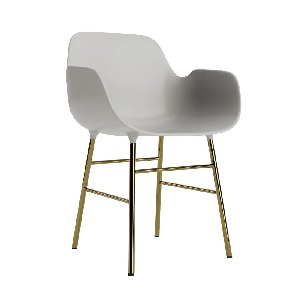 Gleaming brass legs put a shine on the armchair version of the signature Form seating collection by Danish designer Simon Legald for Normann Copenhagen. Steel legs. are paired with the highly comfortable, seamless polypropylene shell seat—which underwent 20 prototypes over the course of 3 years. "I had an idea of what the ideal chair should look like," says Simon. And he got it right.