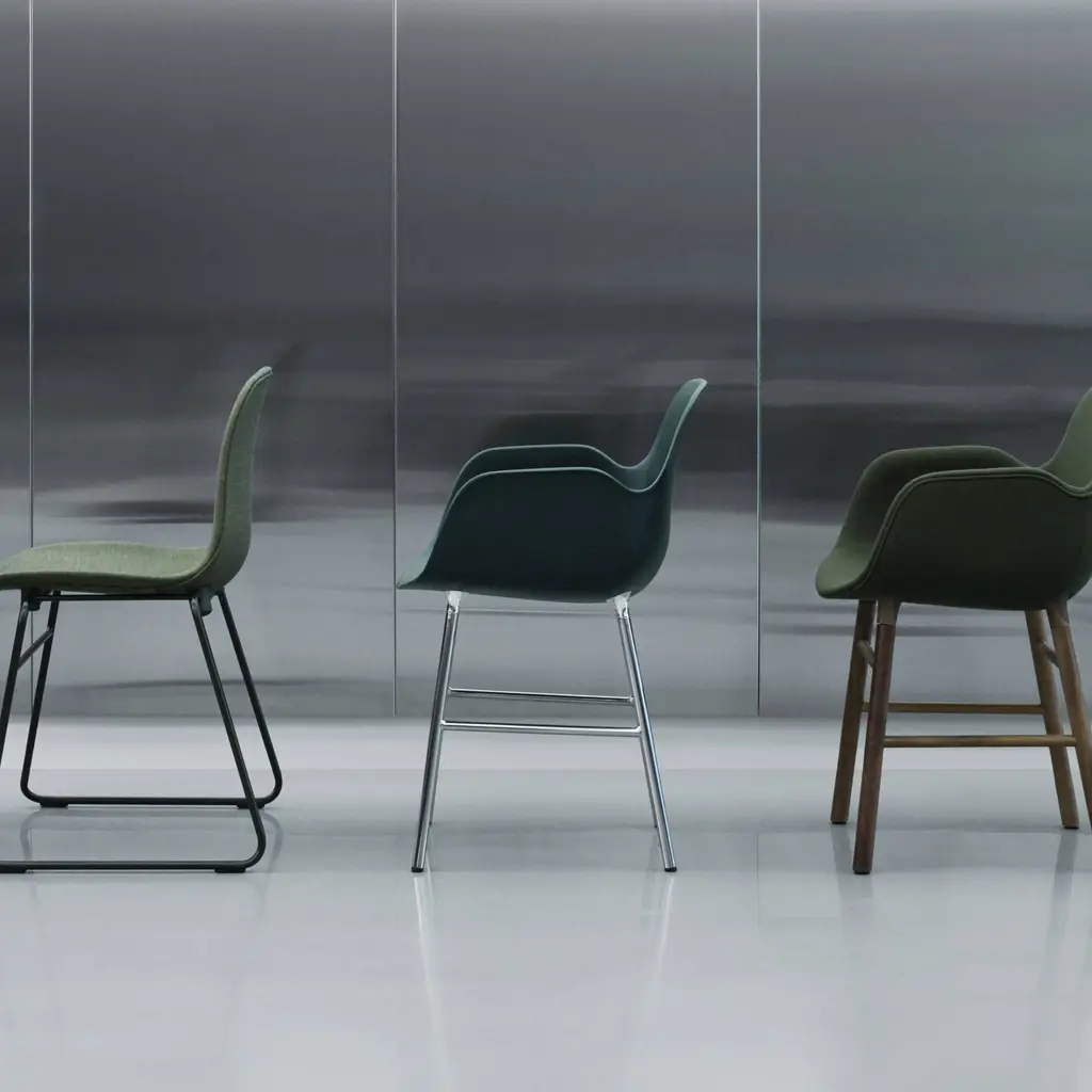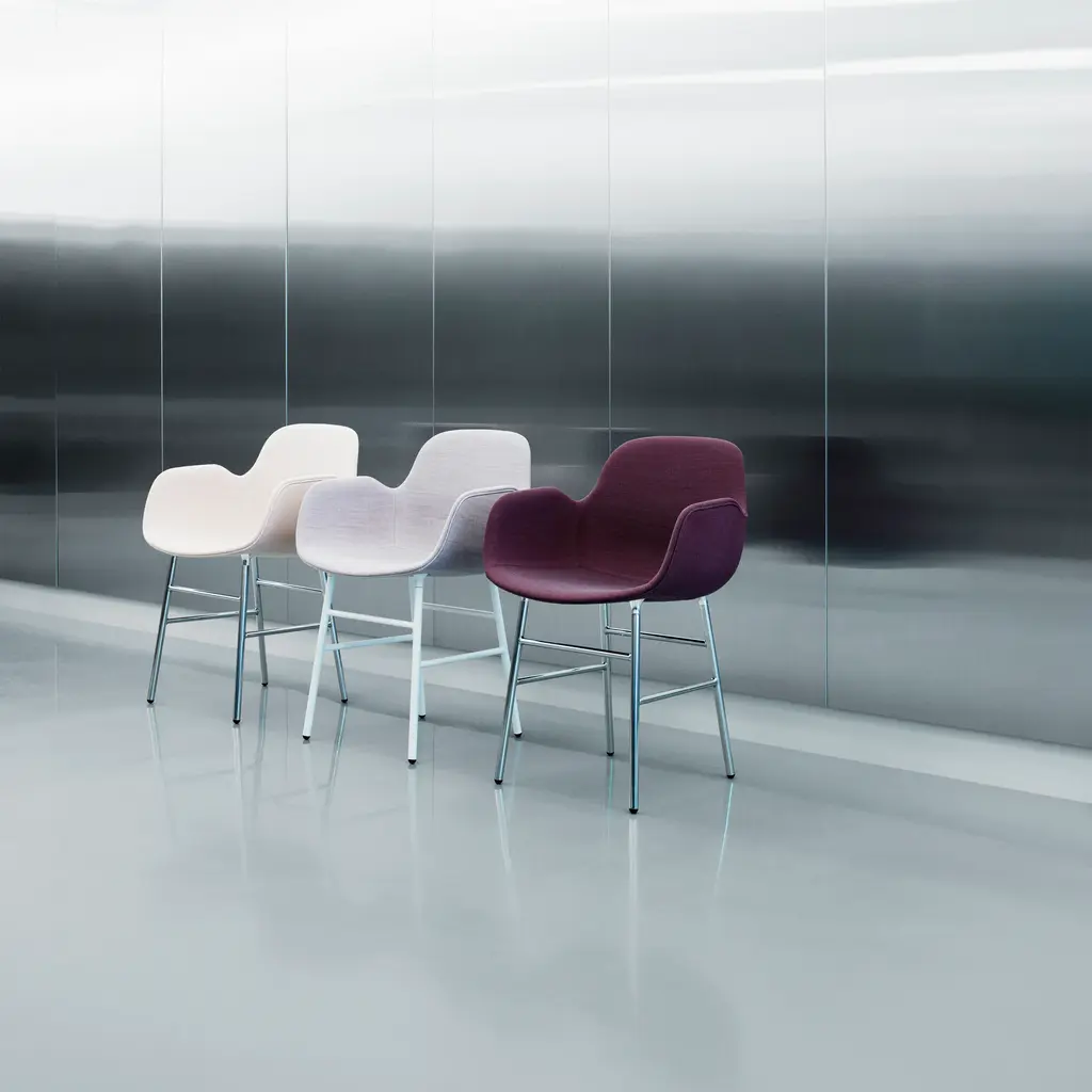 Gleaming chrome legs put a shine on the armchair version of the signature Form seating collection by Danish designer Simon Legald for Normann Copenhagen. Steel legs. are paired with the highly comfortable, seamless polypropylene shell seat—which underwent 20 prototypes over the course of 3 years. "I had an idea of what the ideal chair should look like," say Simon. And he got it right.
