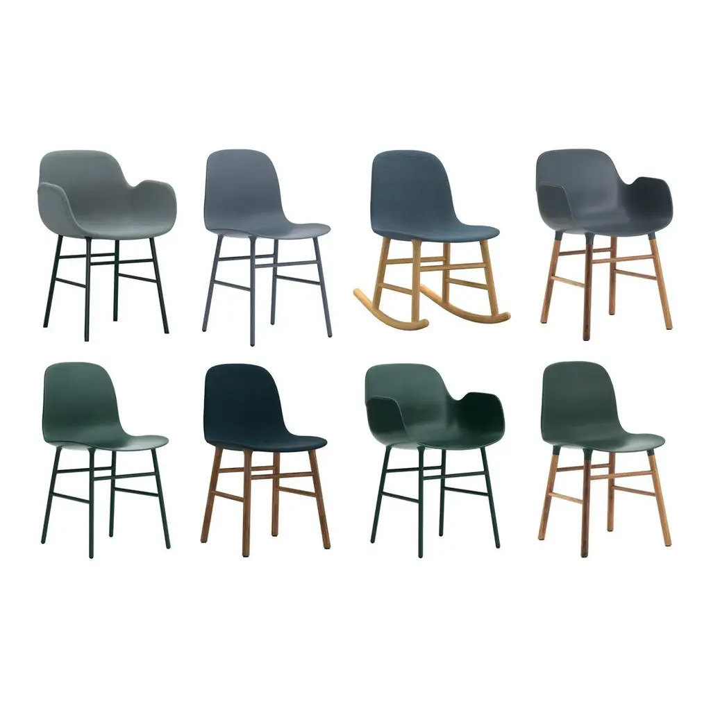 In record time, Form has become one of Normann Copenhagen's most popular designs. In addition to the original plastic shell, the Form family is also available in a fully upholstered version. The upholstered chair emphasizes the main concept of the design, and is a beautiful illustration of how Form's strong design language and well considered silhouette gets a different, sensuous dimension and increased comfort. Luxurious woolen textiles and exclusive leather soften the expression and add warmth, while the specially developed mounting solution also gets a new appearance, taking the look in new directions. With more than 40,000 possible combinations, you are able to customize your very own unique upholstered chair. Play with material mixes, color combinations and contrasts between texture, and create the exact design you desire.