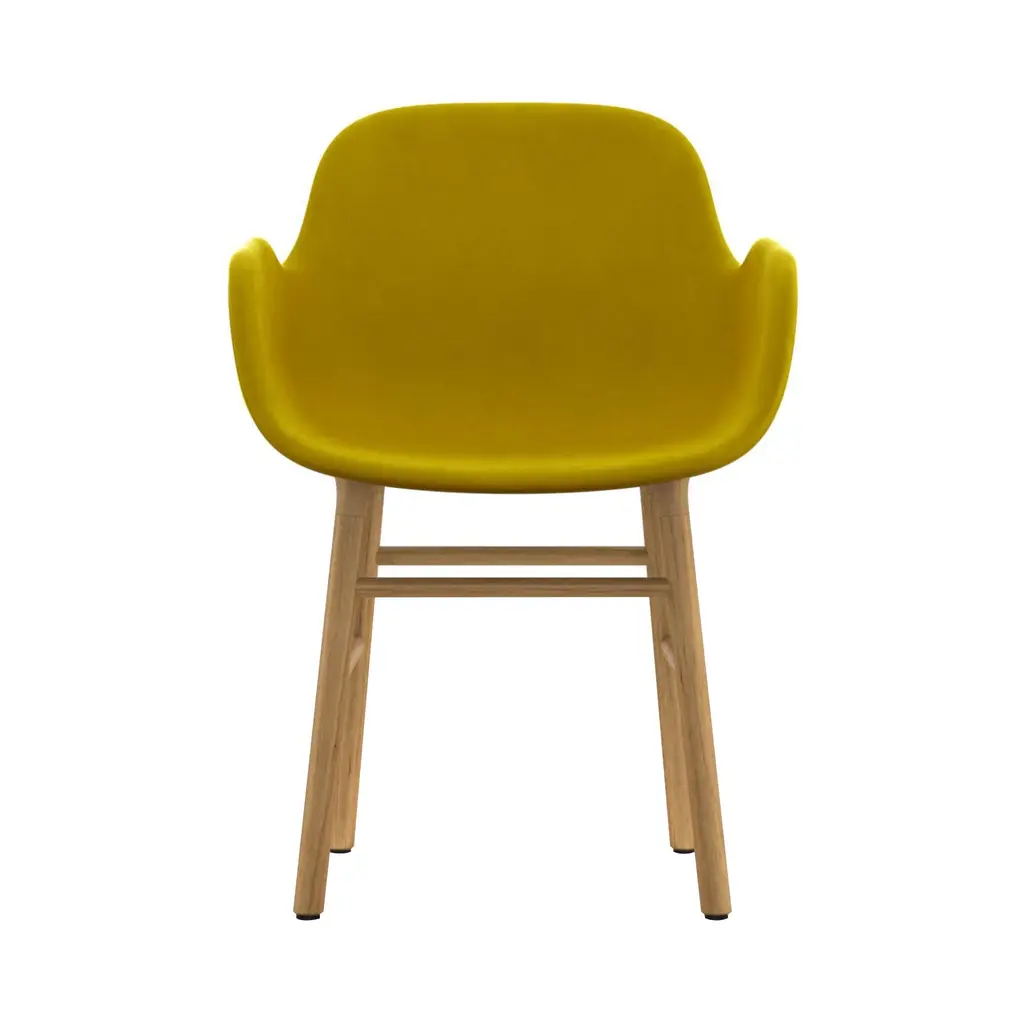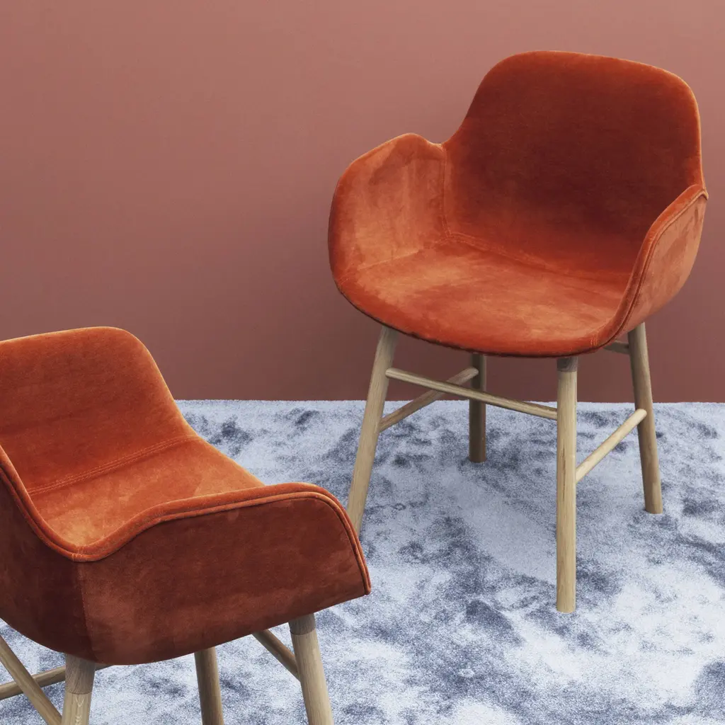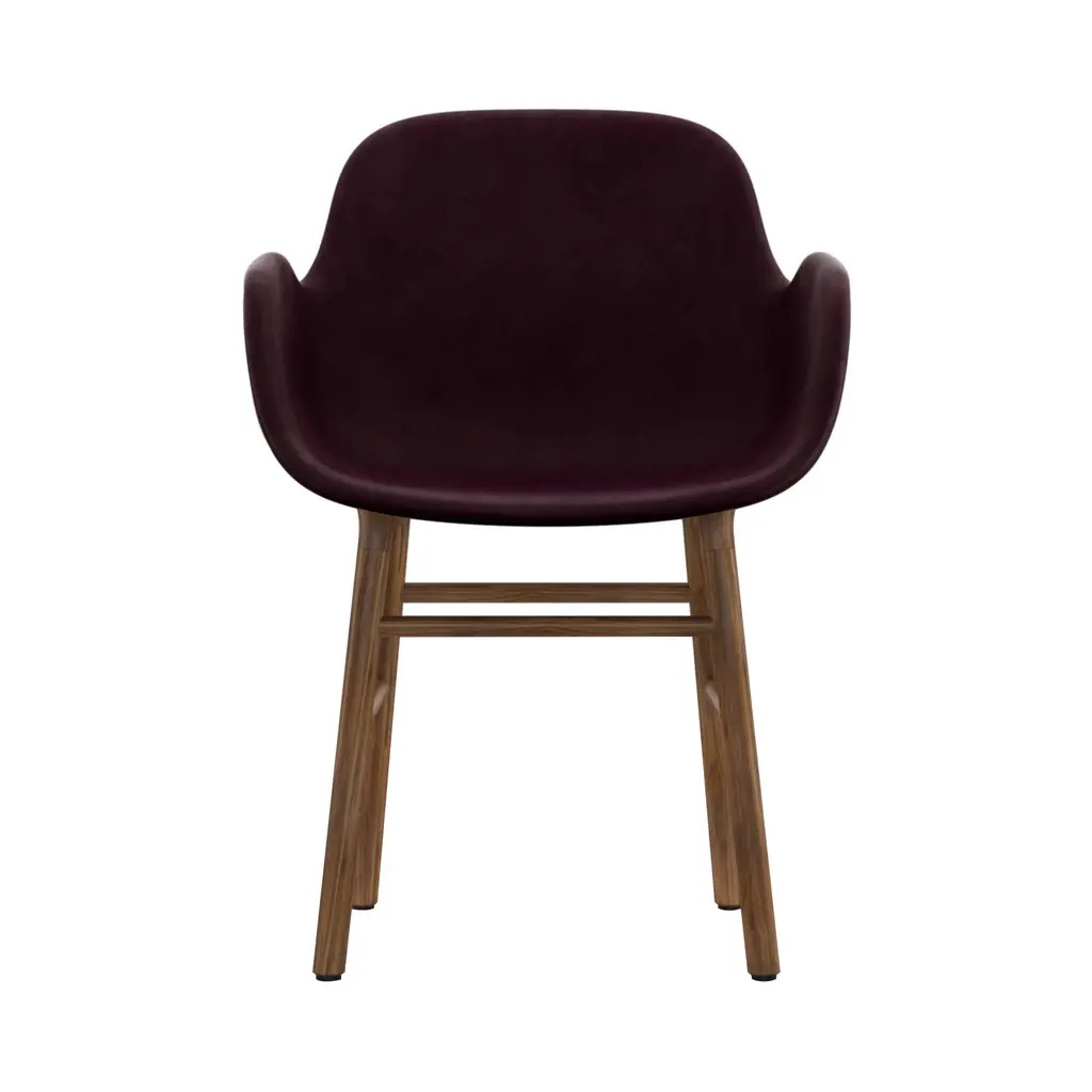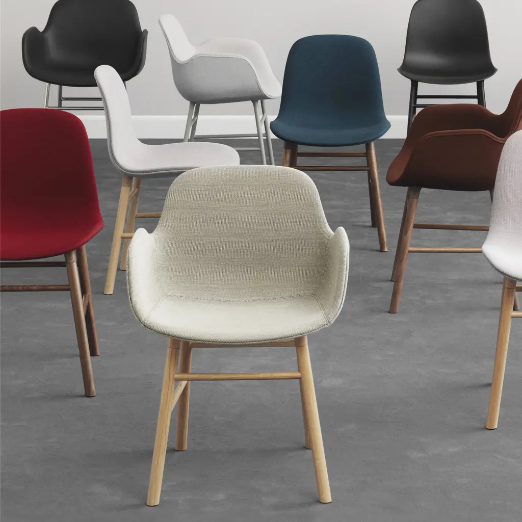 This upholstered armchair option from Danish designer Simon Legald's Form seating collection for Normann Copenhagen brings added variety to his minimalist framework. With more than a dozen iterations in the series and growing, Form starts with a seamless polypropylene shell chair—a comfortable shell that underwent more than 20 prototypes over 3 years until Simon had realized his vision. This version not only gains in visual interest with the wood legs, in walnut or oak; it also ups the look and comfort via textile options from noted Danish textile and leather resources.