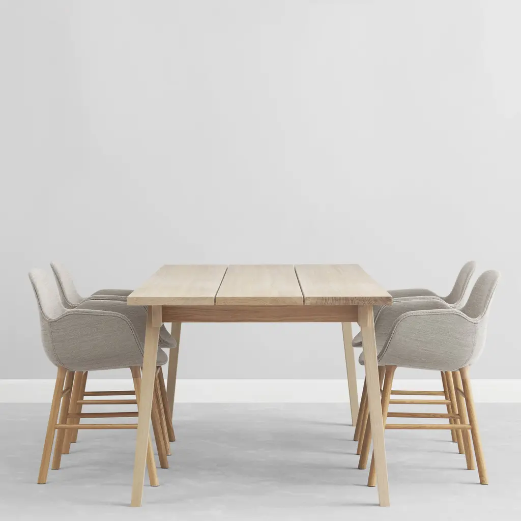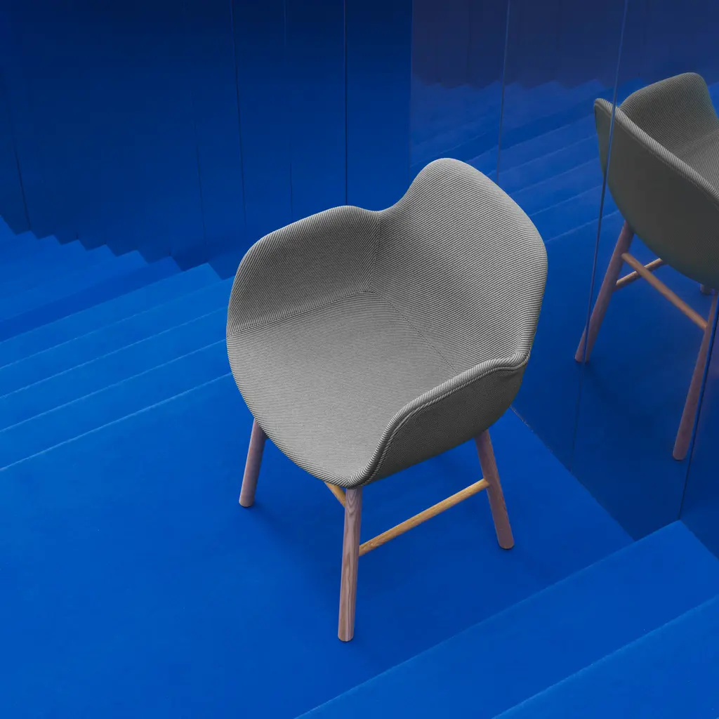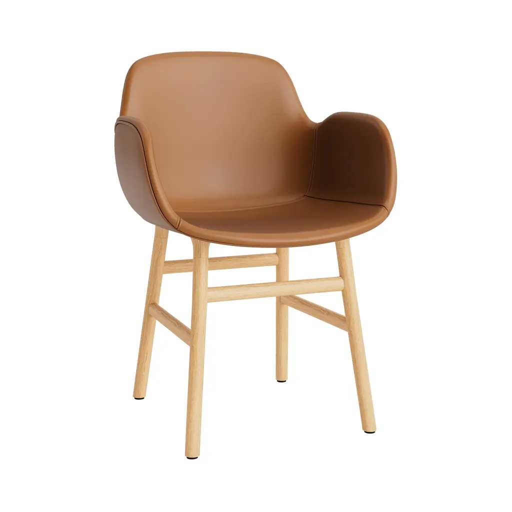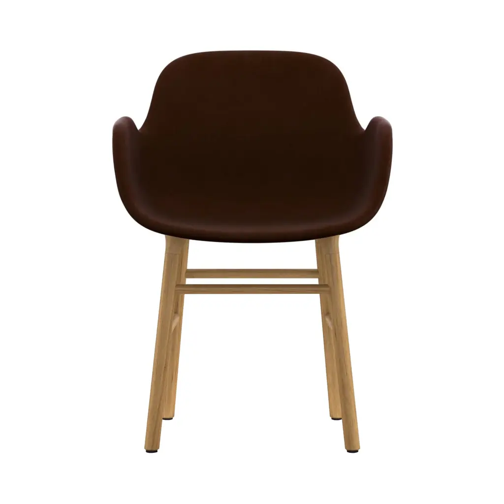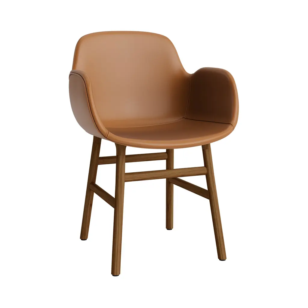 This upholstered armchair option from Danish designer Simon Legald's Form seating collection for Normann Copenhagen brings added variety to his minimalist framework. With more than a dozen iterations in the series and growing, Form starts with a seamless polypropylene shell chair—a comfortable shell that underwent more than 20 prototypes over 3 years until Simon had realized his vision. This version not only gains in visual interest with the wood legs, in walnut or oak; it also ups the look and comfort via textile options from noted Danish textile and leather resources.