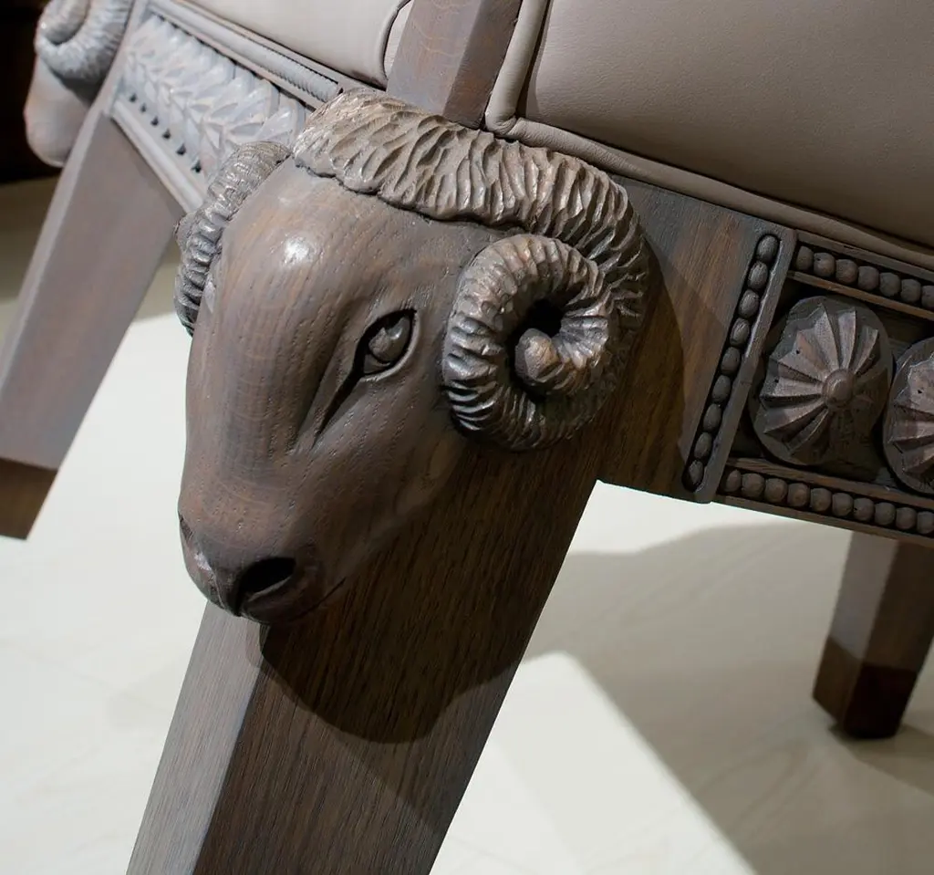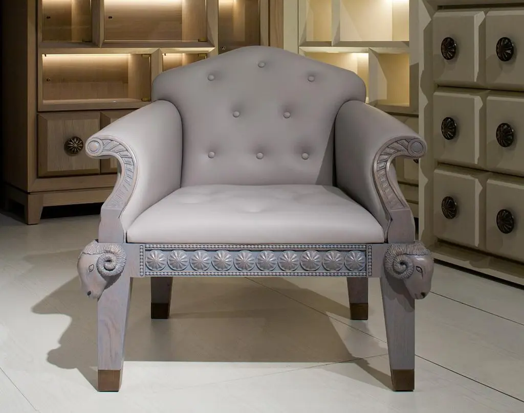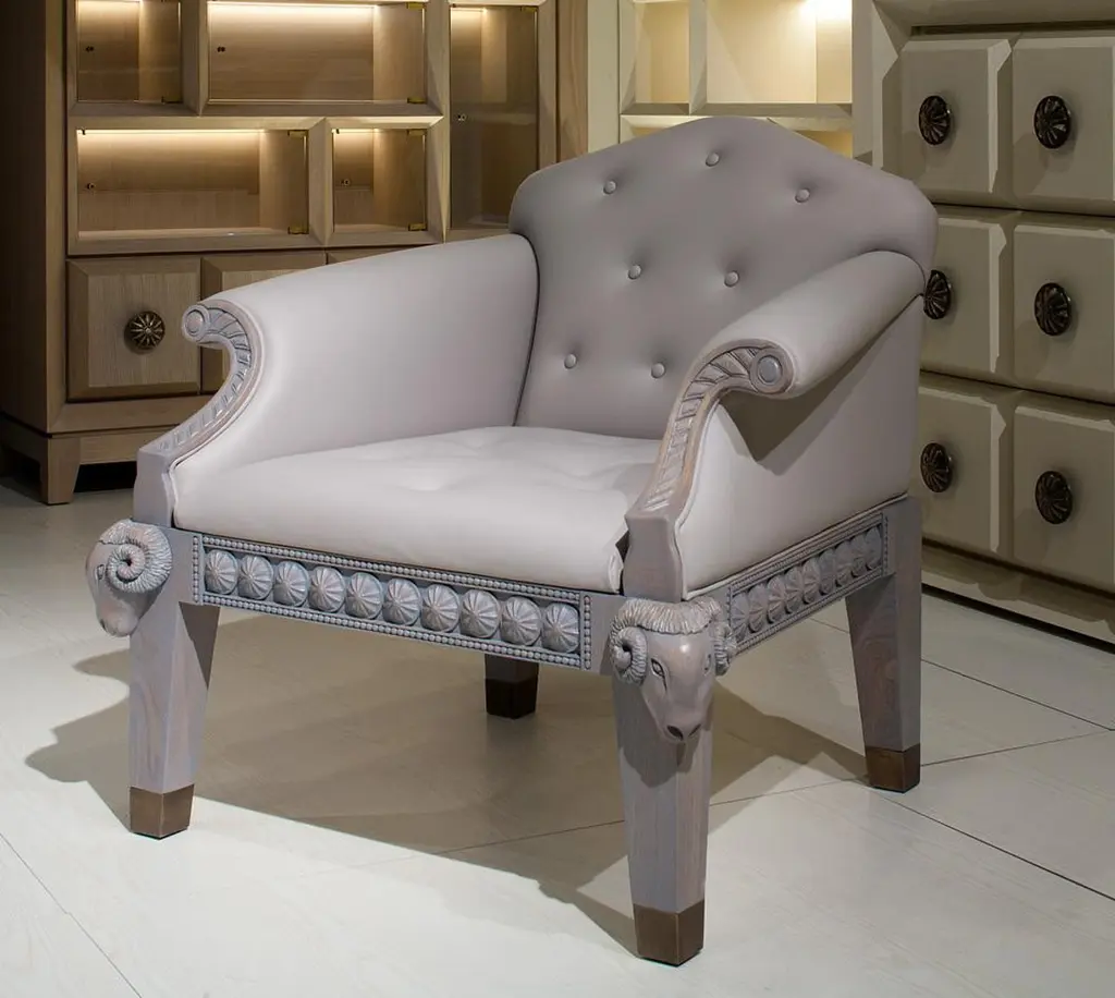 Archer Humphryes Architects' Formidable Beast armchair seamlessly marries classical charm with contemporary design. Drawing inspiration from traditional English-style capitonné armchairs, it boasts luxurious leather upholstery, with a striking balance between minimalism and glamour.The chair's distinguishing feature is the captivating ram's heads, adding a touch of mythology to its design.The base showcases a perfect blend of unique details, creating a harmonious interplay between simplicity and opulence.In essence, the Formidable Beast armchair is not just furniture; it's a masterful fusion of tradition and innovation, a true showpiece that captures the essence of Archer Humphryes Architects' design prowess.
