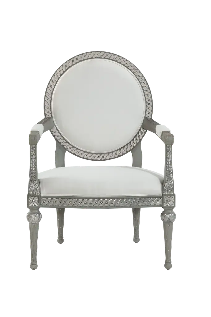Formidable Beast Gray Oak Armchair With Buttons - Wooden Rams And Tips