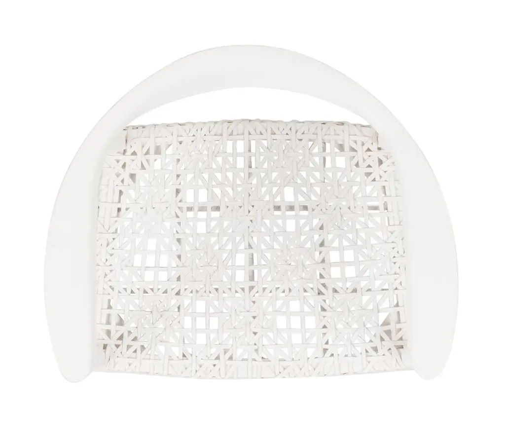 Slender strips of leather woven in an intricate pattern make up the seat of this midcentury-style chair; the frame is crafted of mindi wood, popular for its durability and straight grain.