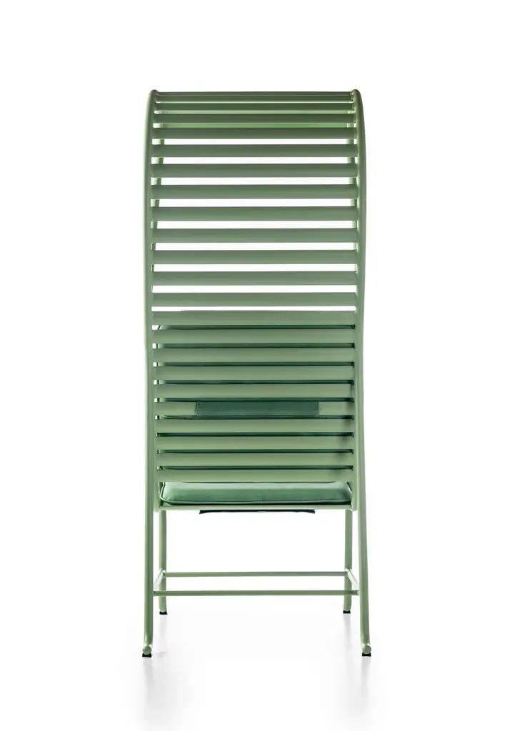 Gardenias outdoor armchair with Pergola designed by Jaime Hayon for BD Barcelona. Spanish artist-designer Jaime Hayon is one of the most acclaimed creators worldwide. Hayon’s esteem and knowledge of artisan skills and his inherent creativity have allowed him to push the boundaries of many mediums and functions, resulting in collections for very diverse clients.Gardenias Outdoor collection consists an armchair, a bench or an armchair with pergola (available here). The structure is in aluminium and it laminates in extruded aluminium. It is available in three colour options, all powder coated with either white (RAL 9001), grey (RAL 7015) or green (RAL 6021). Optional detachable upholstered cushions are available with covers that are removable for washing. These cushions are made up of water-repellent foam which is best suitable for all outdoor conditions. Gardenias collection renders a great form of aesthetics to celebrate a delightful outdoor experience.Outdoor use.
