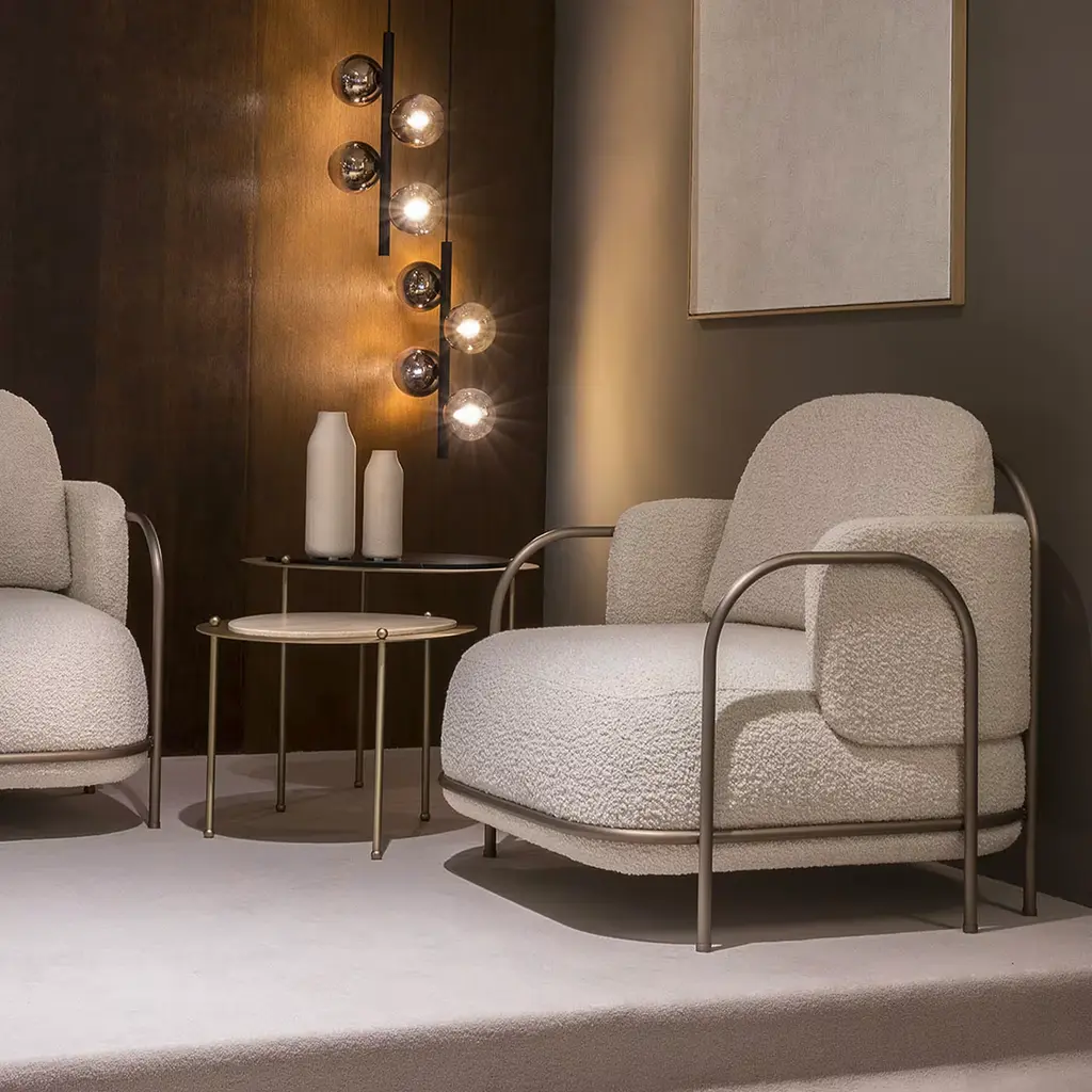 The Gaston Armchair exemplifies a harmonious blend of comfort and contemporary design. Featuring a large, rounded form, this armchair is supported by a robust painted metal frame that adds both stability and a touch of modern elegance. The generous seat size includes a double-padded backrest, ensuring exceptional comfort for extended use. Crafted from environmentally certified plywood, fir, hardboard, and Airflex, the armchair is upholstered in layers of open cell polyurethane and Dacron, enhanced with elastic strap support. The Gaston Armchair is customizable with options for various finishes, allowing for personalization to suit individual styles. Contact the Concierge for more details.