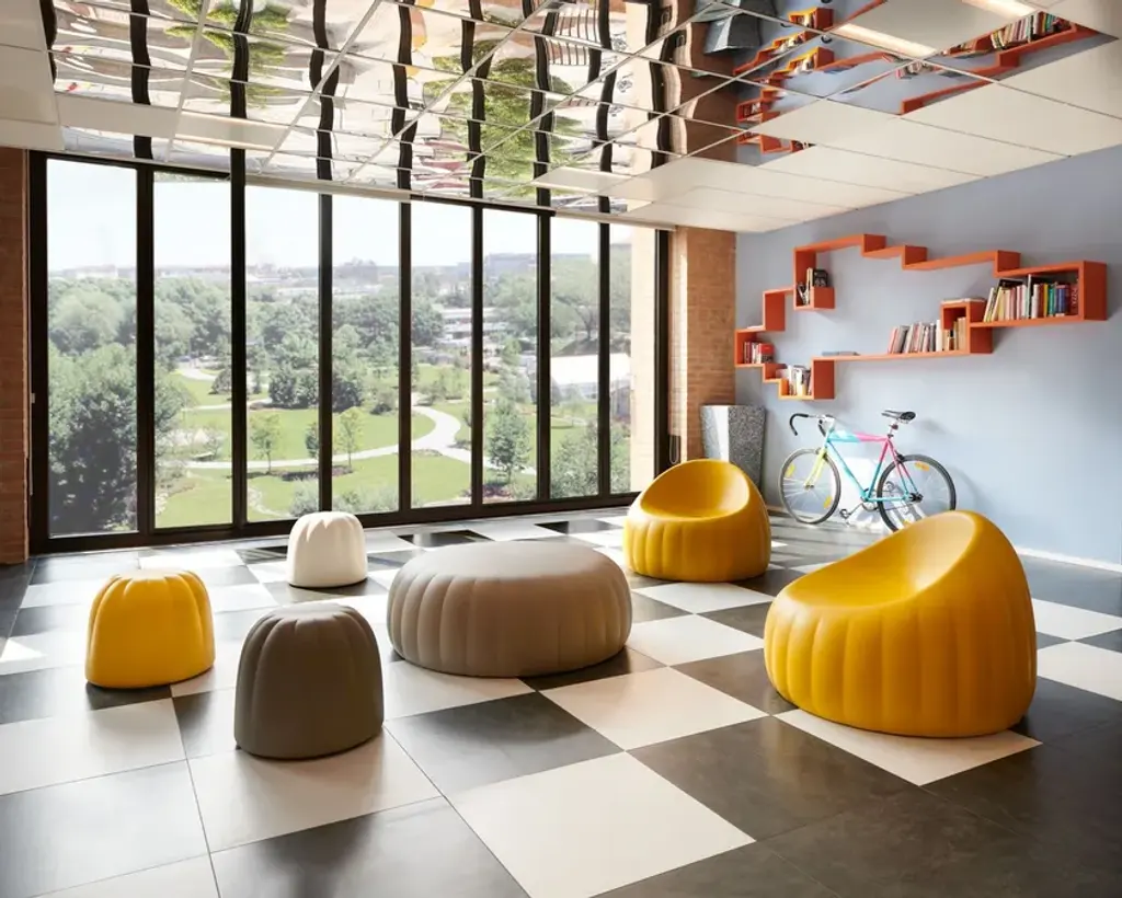 Gelée Lounge, created by Roberto Paoli, is the lounge armchair that belongs to Gelée collection, made in soft polyurethane. As Gelée stool and Gelée Grand pouf, also Gelée Lounge reminds of the shape of a jelly candy, but with the addition of a comfortable backrest. The softness and the enveloping shape of Gelée Lounge invites you to "taste it" at first sight.