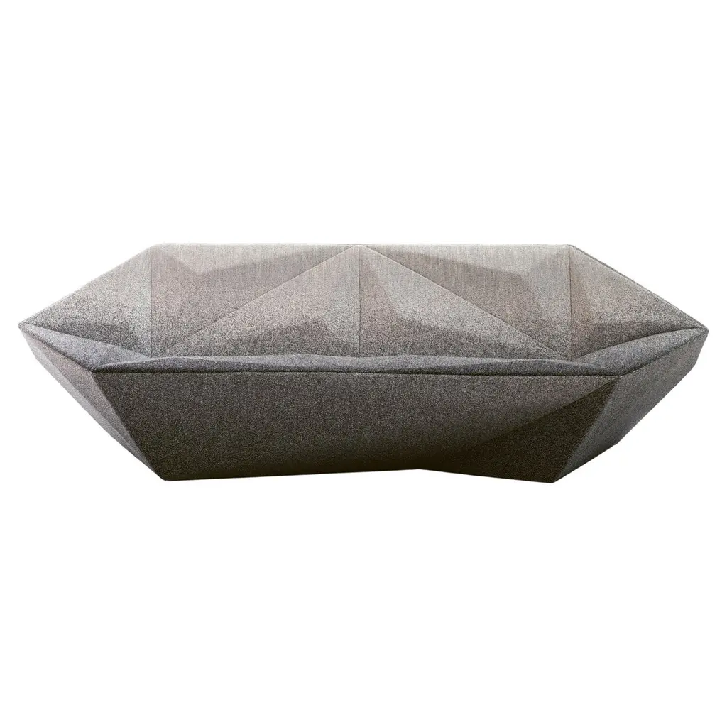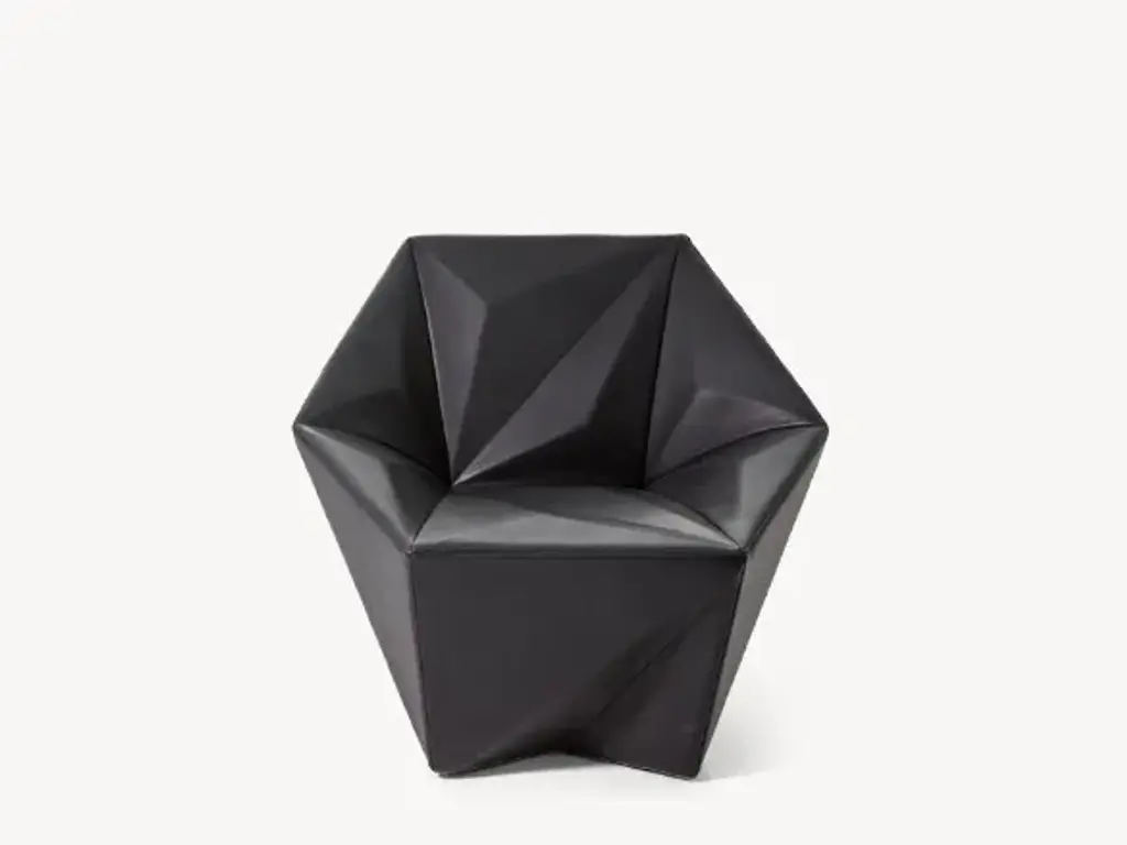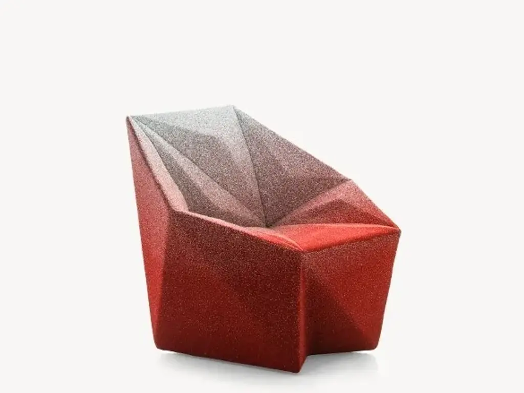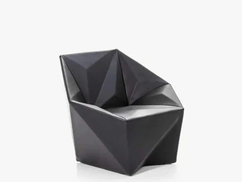 Gemma is an armchair with stress-resistant flame-retardant polyurethane foam in varied densities on resin-traded polystyrene. Glides are in black polypropylene.Gemma collection covers are not removable.The Gemma collection was developed around the idea of contrast and experience derived from the perception of a shape. The sharp asymmetry of its three-dimensional geometry contrasts the softness of the upholstery. The multi-faceted profile is reminiscent of both a precious gemstone and of the compositions typical of fifteenth century Italian tapestries. The collection represents a synergy between the complex geometries of Libeskind and the well-known expertise of Moroso.Libeskind has drawn a tremendous amount of inspiration from natural geological forms including crystals, gems and natural rock formations. For the Moroso collection, the design is informed by the asymmetrical faceted design of gems to create both a sculpture piece for the home or office and connect to Libeskind’s large oeuvre.