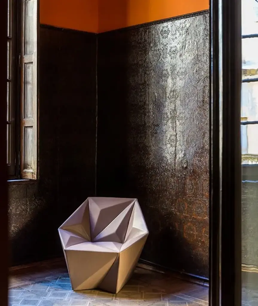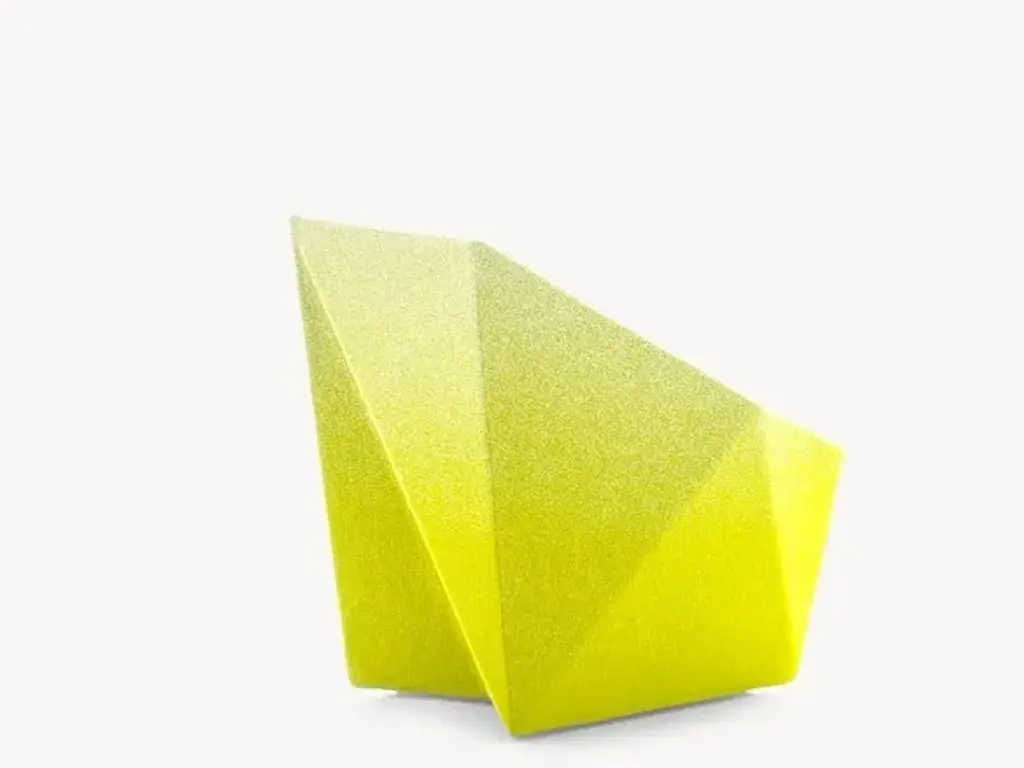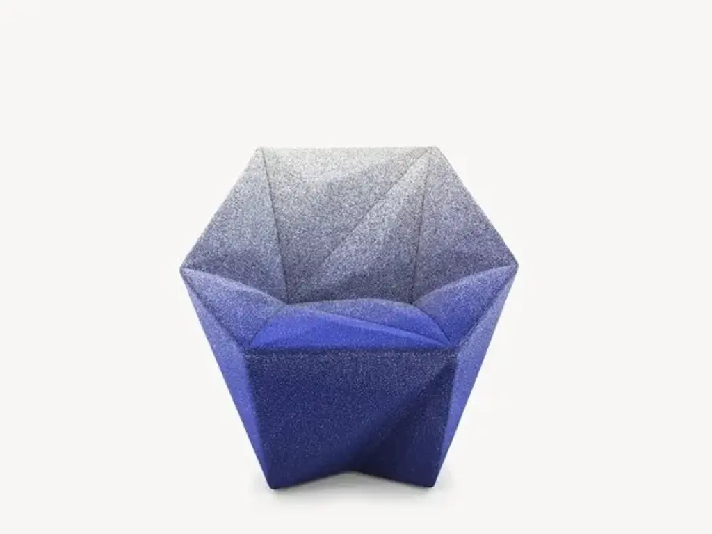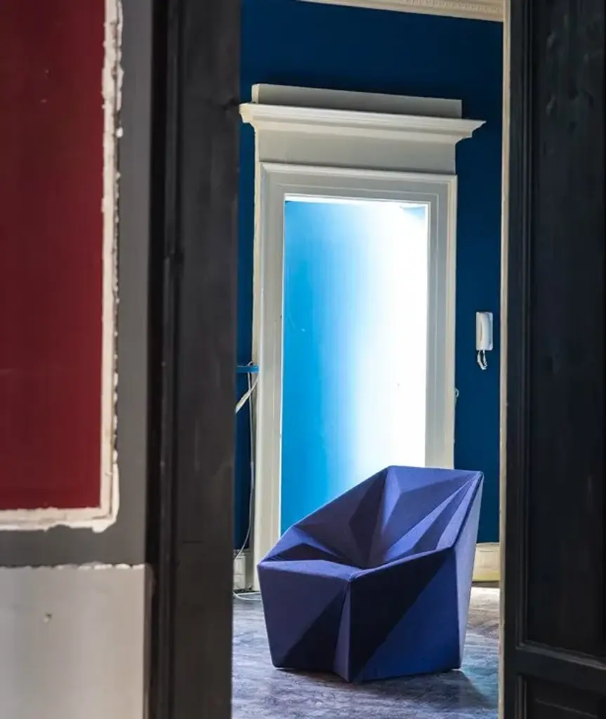 Gemma is an armchair with stress-resistant flame-retardant polyurethane foam in varied densities on resin-traded polystyrene. Glides are in black polypropylene.Gemma collection covers are not removable.The Gemma collection was developed around the idea of contrast and experience derived from the perception of a shape. The sharp asymmetry of its three-dimensional geometry contrasts the softness of the upholstery. The multi-faceted profile is reminiscent of both a precious gemstone and of the compositions typical of fifteenth century Italian tapestries. The collection represents a synergy between the complex geometries of Libeskind and the well-known expertise of Moroso.Libeskind has drawn a tremendous amount of inspiration from natural geological forms including crystals, gems and natural rock formations. For the Moroso collection, the design is informed by the asymmetrical faceted design of gems to create both a sculpture piece for the home or office and connect to Libeskind’s large oeuvre.