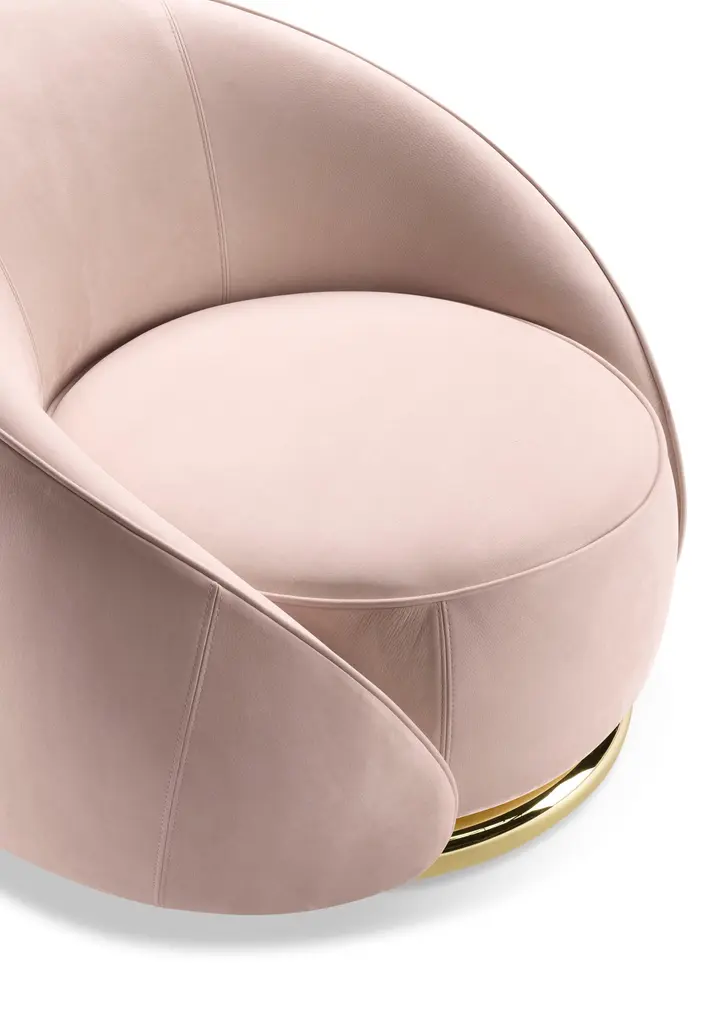 A hug conveys love and friendship, encapsulating a thousand words with elegance and simplicity while sparking the Serotonin of happiness and relaxation. Abbracci (hug in Italian) is wrapped with soft nabuck leather crowned by a brass metal tube at the base, underlining its curved and welcoming shape, while the backrest design compliments this simple yet important gesture.Additional information:Materials: Polished brass, Nabuk leatherDimensions: W 100 x D 90 x H 70 cmAvailable in other upholstery options: Nappa leather, natural leather, velvet, fabricAvailable in other finish options: Satin brass, light burnished brass, brown burnished brass, dark burnished brass, black gold.