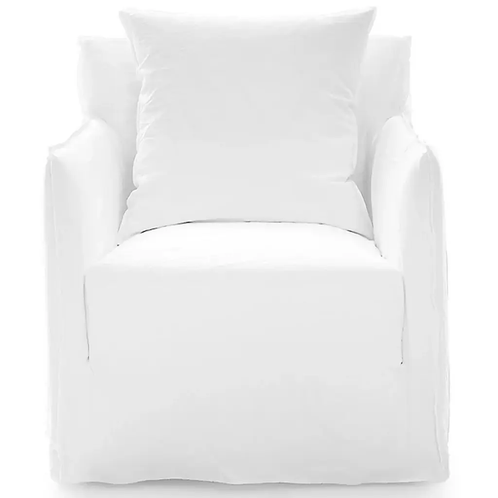 The inviting Ghost 09 Upholstered Armchair from Gervasoni gives your living space an Italian design sensibility. Designed by Paola Navone, this armchair’s contoured features and uniform aesthetic pay tribute to its ghost-inspired theme. Your armchair is well suited for placement in transitional settings. The Ghost 09 Upholstered Armchair is upholstered with a blend of 52% cotton and 48% linen. Lino Bianco fill material provides additional comfort. Your armchair includes 2 23.62 square cushions.