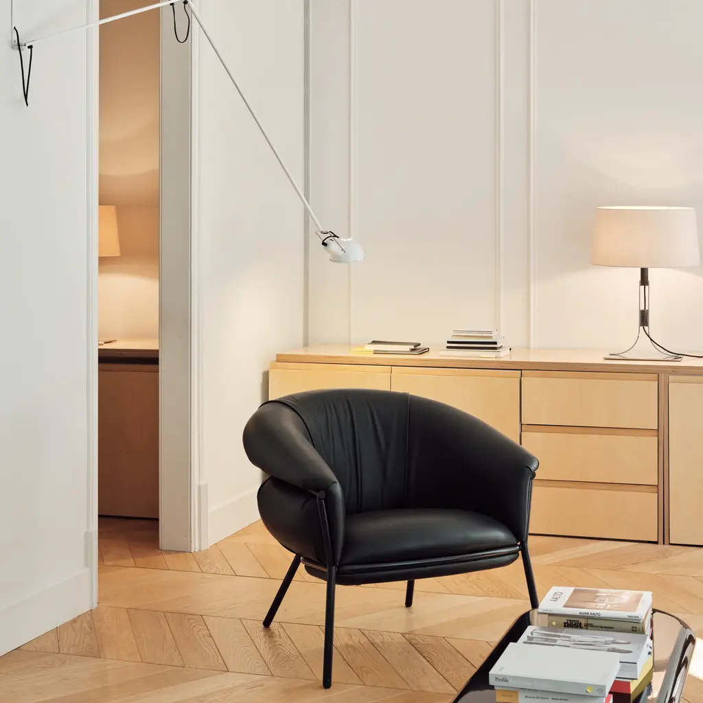 The Grasso Armchair makes a bold visual statement with its design, emphasizing an abundance of comfort. The upholstery appears to overflow the tubular steel frame, giving the impression that the material is almost too generous for its structure and is being squeezed. The frame is available in red, black, blue, or dark grey, and the upholstery options extend to both leather and fabric. A playful addition to private homes and commercial spaces, the Grasso also comes with an optional matching footstool to elevate the lounging experience.