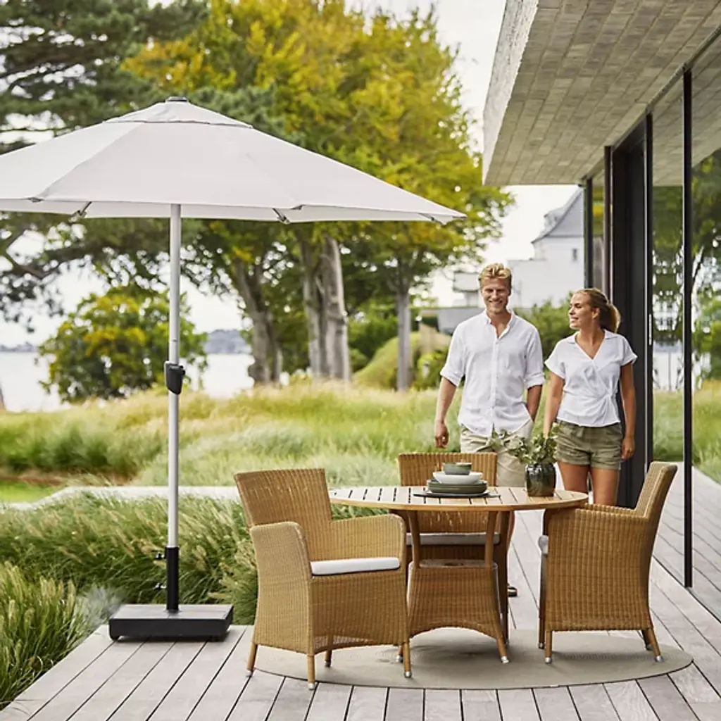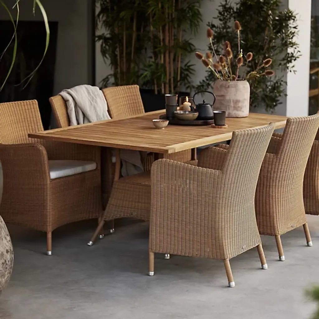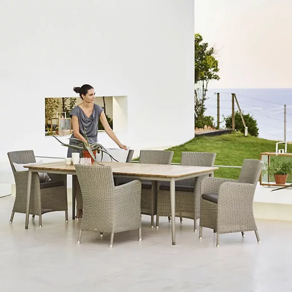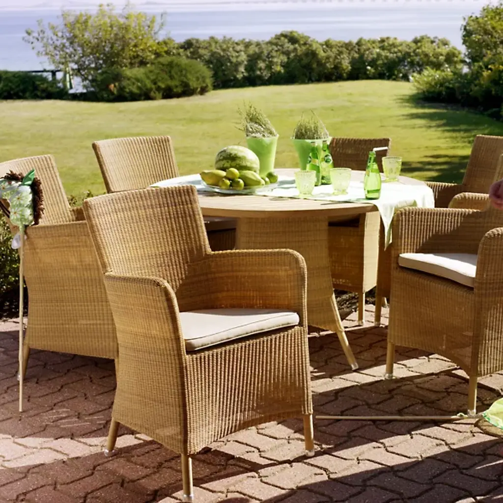 Tall, tasteful, and tactile, the Hampsted Outdoor Armchair with Cushion from Cane-line brings commanding, comfortable seating to outside spaces. This Danish design starts with a strong tubular frame of galvanized steel surrounded by faux wicker loom-woven from wet and UV-resistant Cane-line weave with hours of craftsmanship perfecting the tactile loops. The curving arms and high back create an encompassing seat, while the rugged materials mean the chair can be left outside year-round, easily weathering extreme climate conditions.