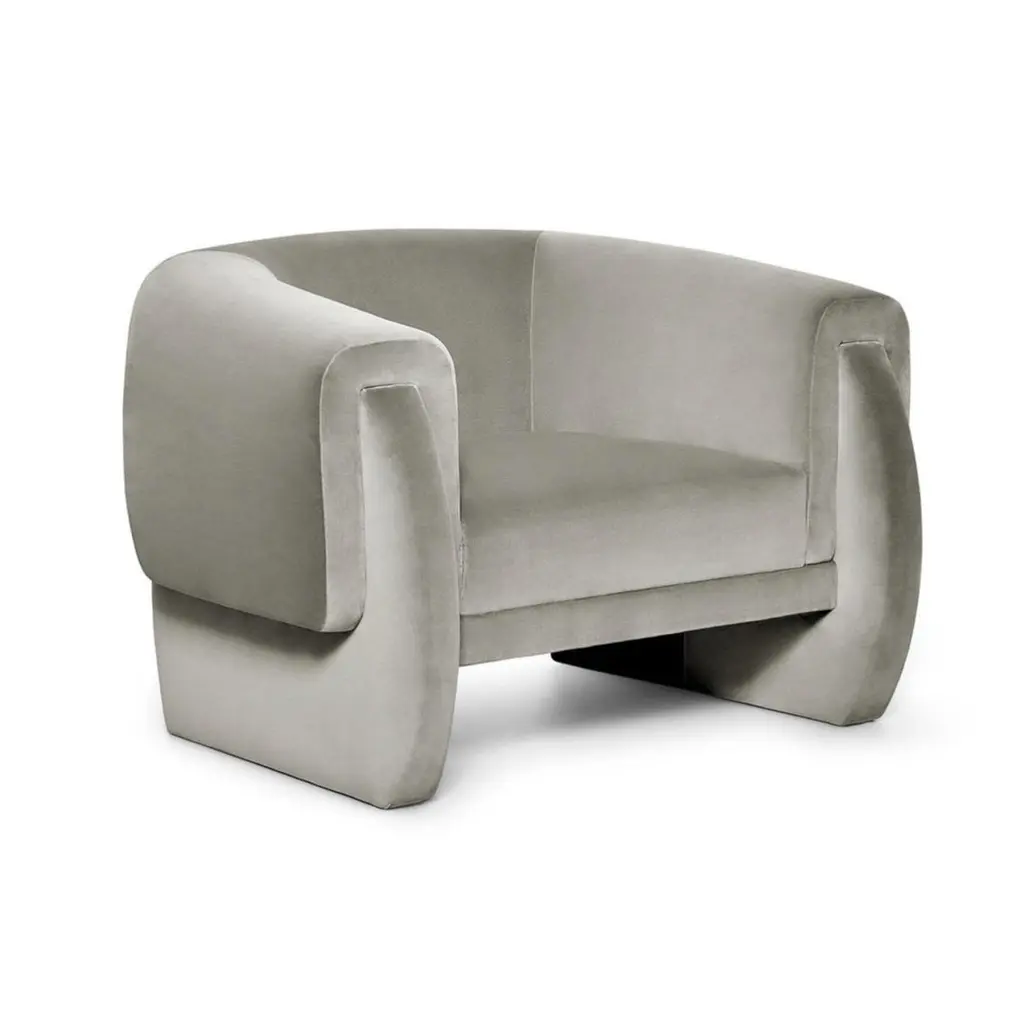 This armchair is a time capsule of style. Taking cues from the most fashionable styles of scarves in history, it’s subtle and layered composition create a dynamic and effortlessly stylish presence. From the half round composition of the arms, to its graceful seat and back curvatureUpholstery: Velvet Handmade in Europe.We will be glad to check with the factory’s technical team if sizes, finishes, and colors can be customized.We do our best to expedite production and to ship and deliver product within the listed lead time, however current lead times might be longer due to global shipping backlog and delays. These delays are out of our control and cannot be a reason to cancel an order.Our pricing includes all costs for international shipping to the U.S., as well as duties and customs clearance fees. Please be aware that local delivery within the U.S. is not included. We offer white glove, front door, and warehouse delivery options. For shipments outside the U.S., kindly reach out to us for a detailed quote..