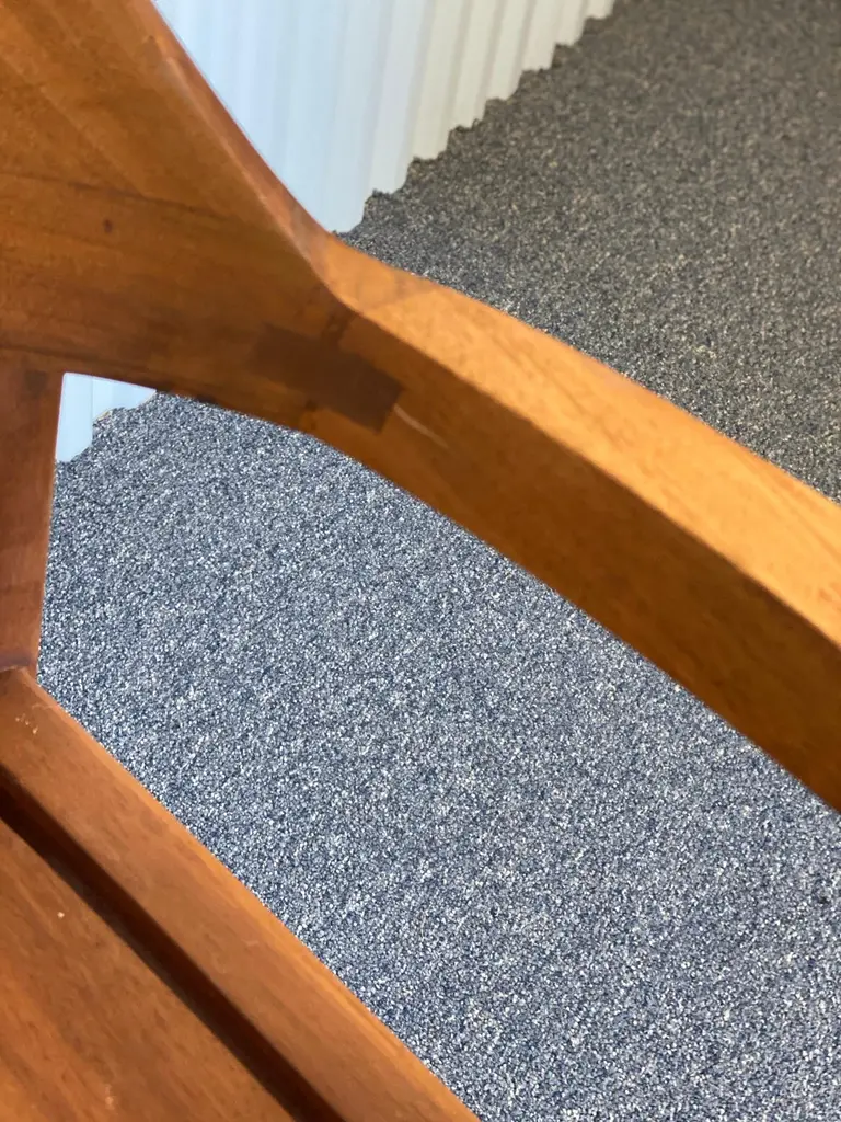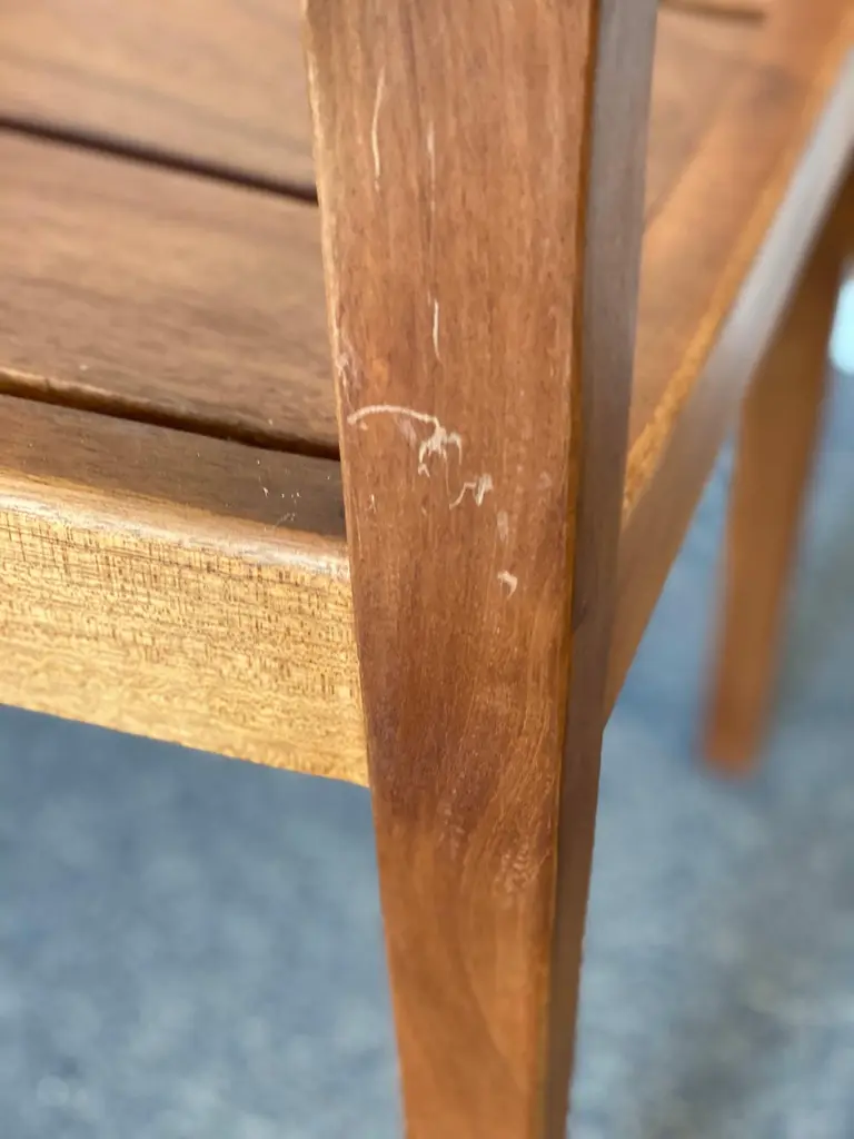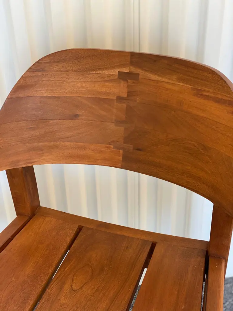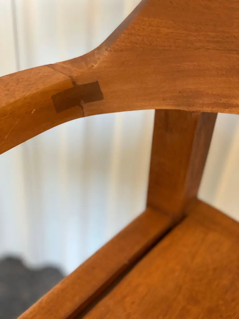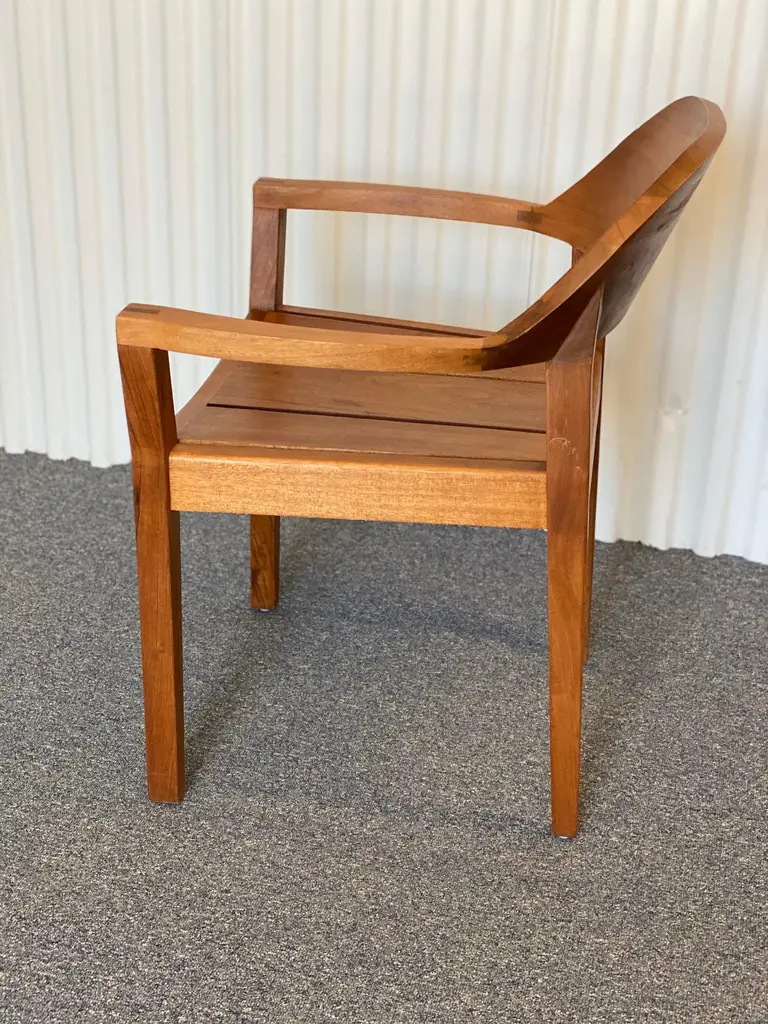 Handmade modern style Royal mahogany srmchair.Made in Nicaragua out of local wood, Cedro Macho or Royal mahogany wood. Some scratches to finish. Really well made, solid chair with interesting design details.Measures: 33" high x 25.5" wide x 22" deep x 18.5" seat height.
