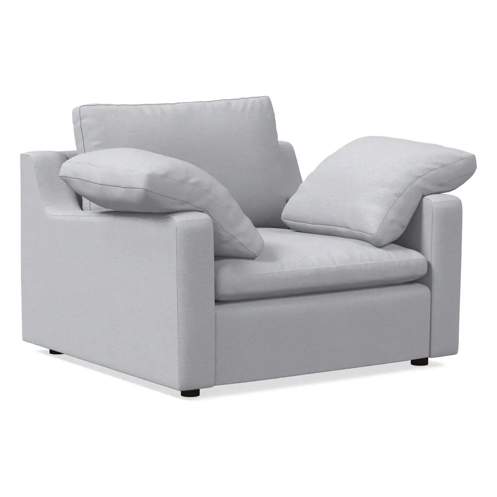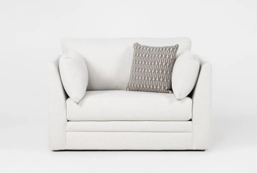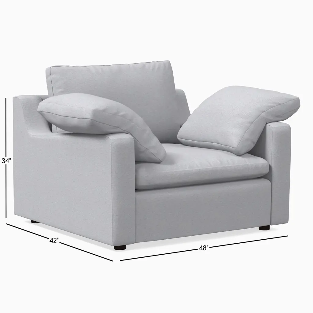Harmony is our most comfortable chair ever, thanks to its deep, low-lying seat, plush cushions and go-anywhere lumbar and throw pillows. Made for sprawling out or curling up, this version is updated with softly curved arms for added flair.