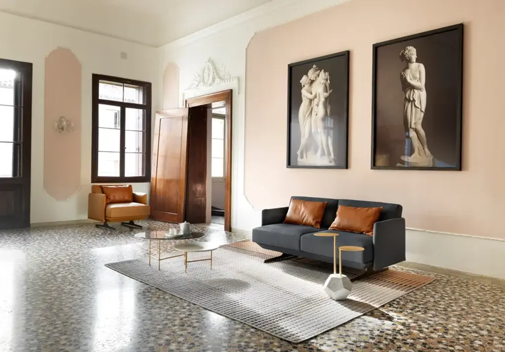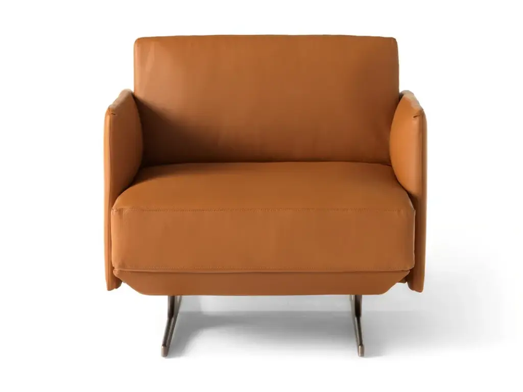 Hugò is an upholstered armchair with armrests and a thin shape but generous volumes. Oriented to a design that operated as a link between essentiality and comfort, it is perfect for contract spaces, living and domestic environments.