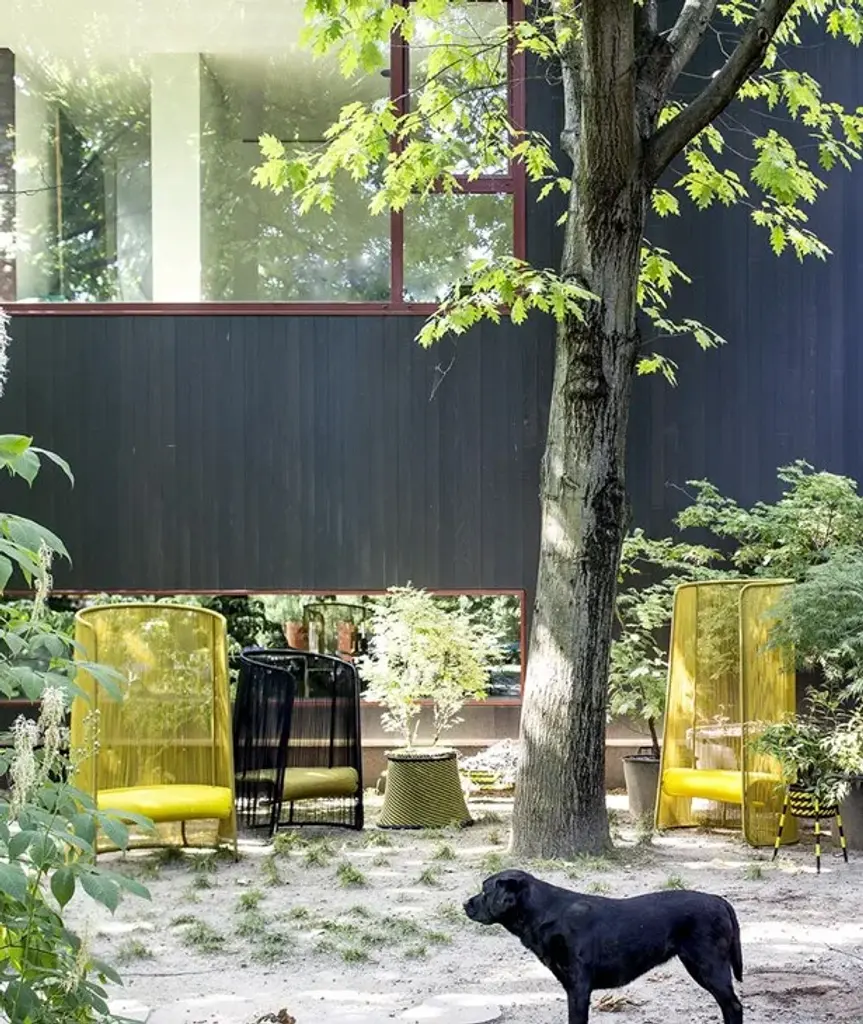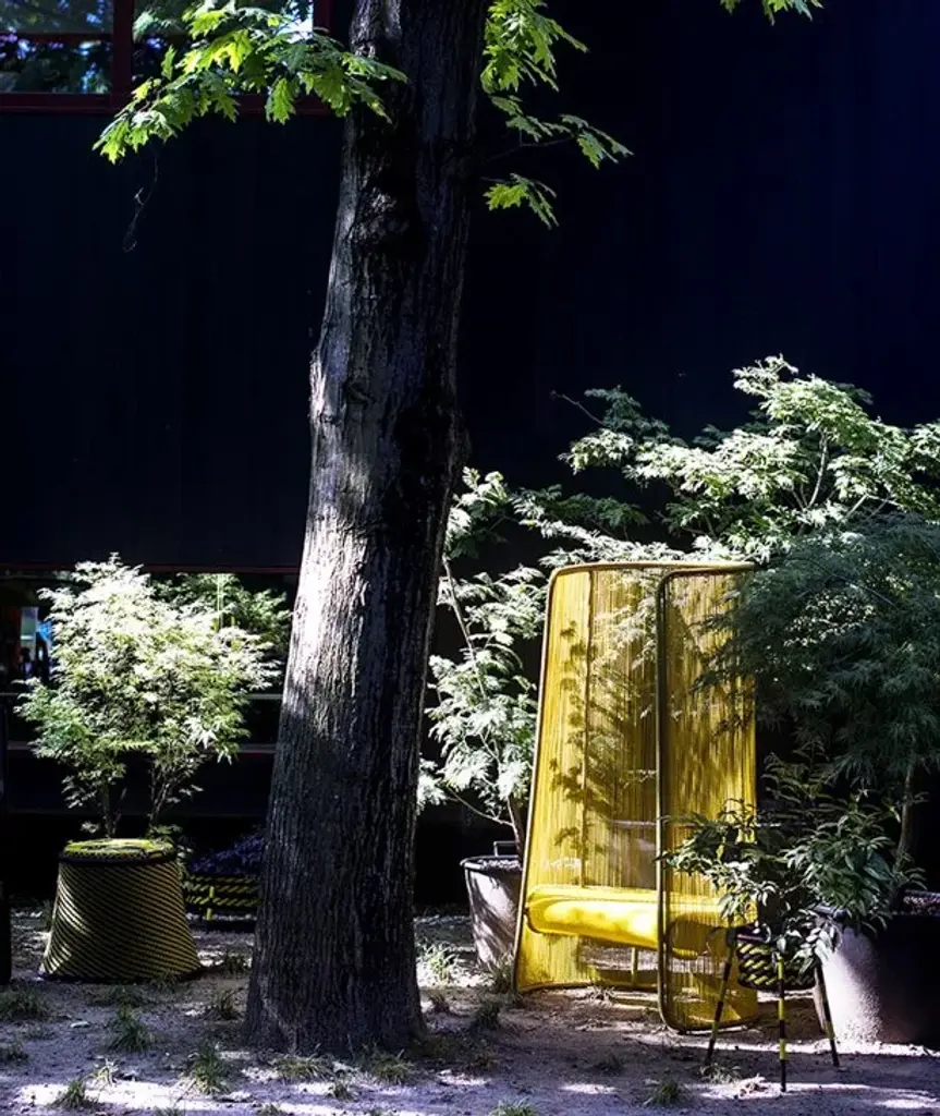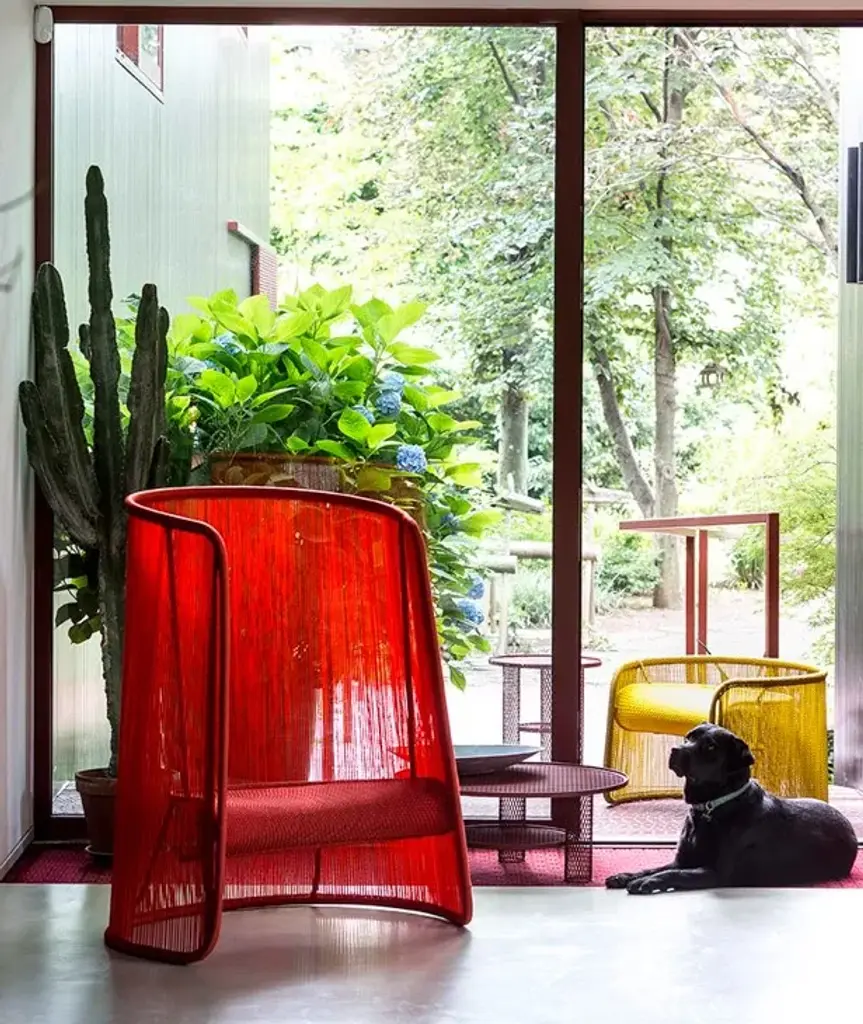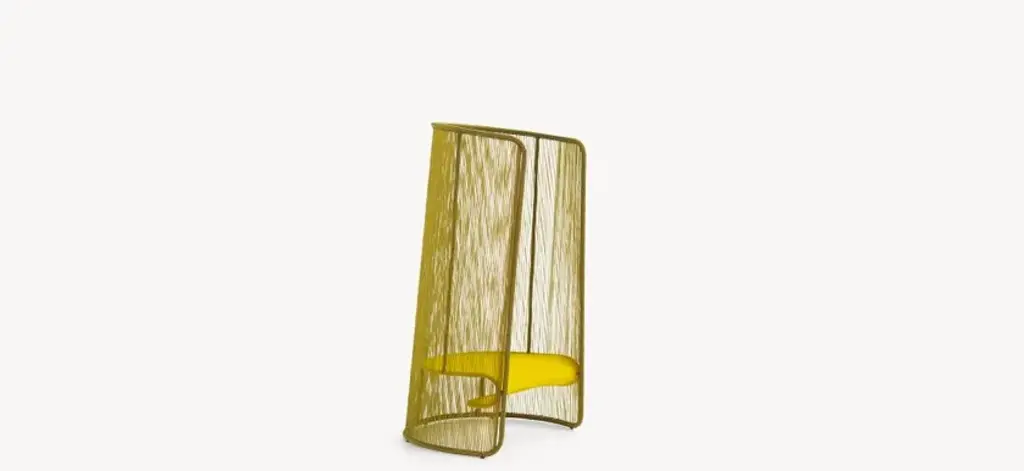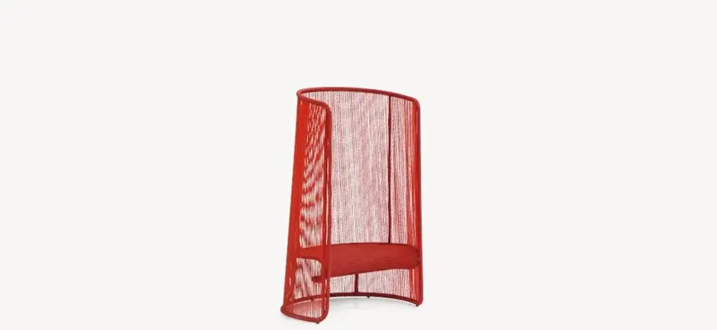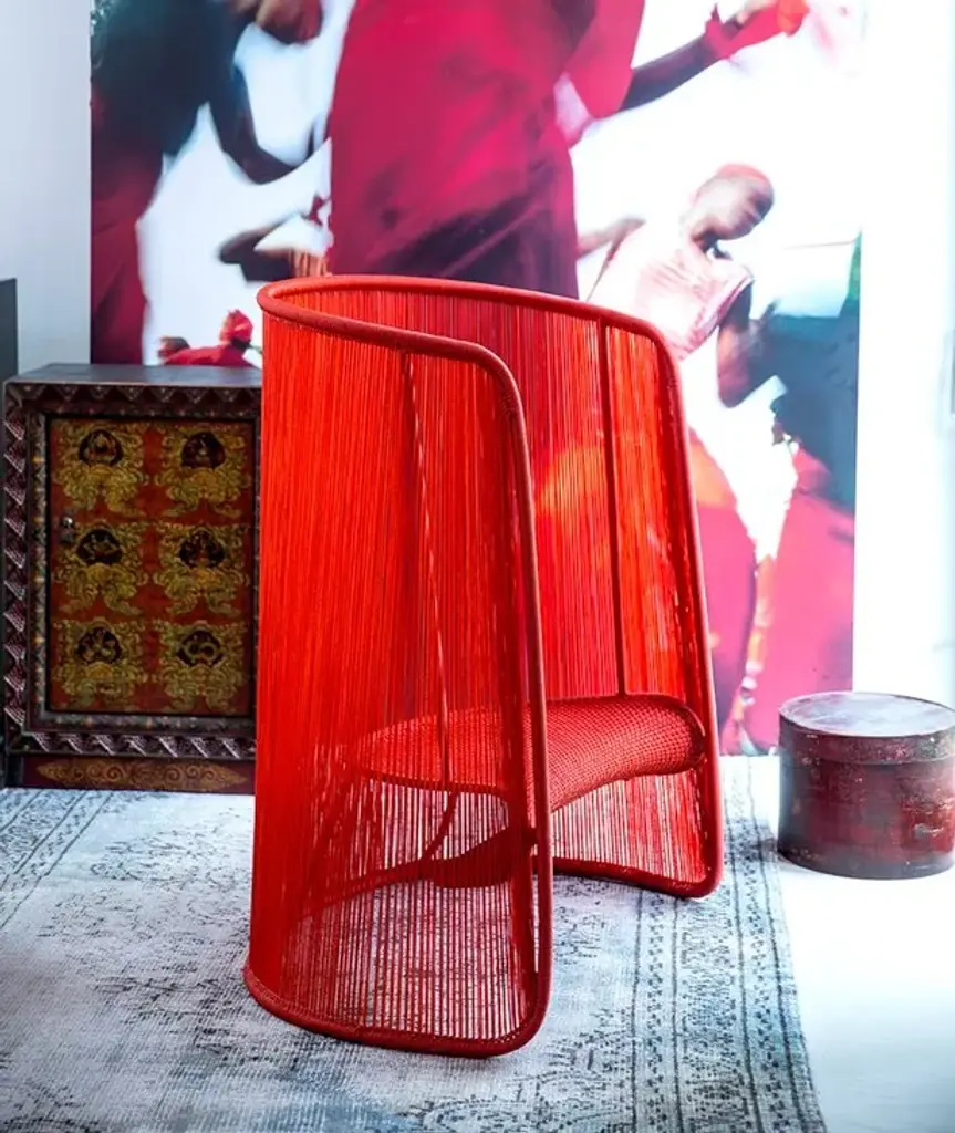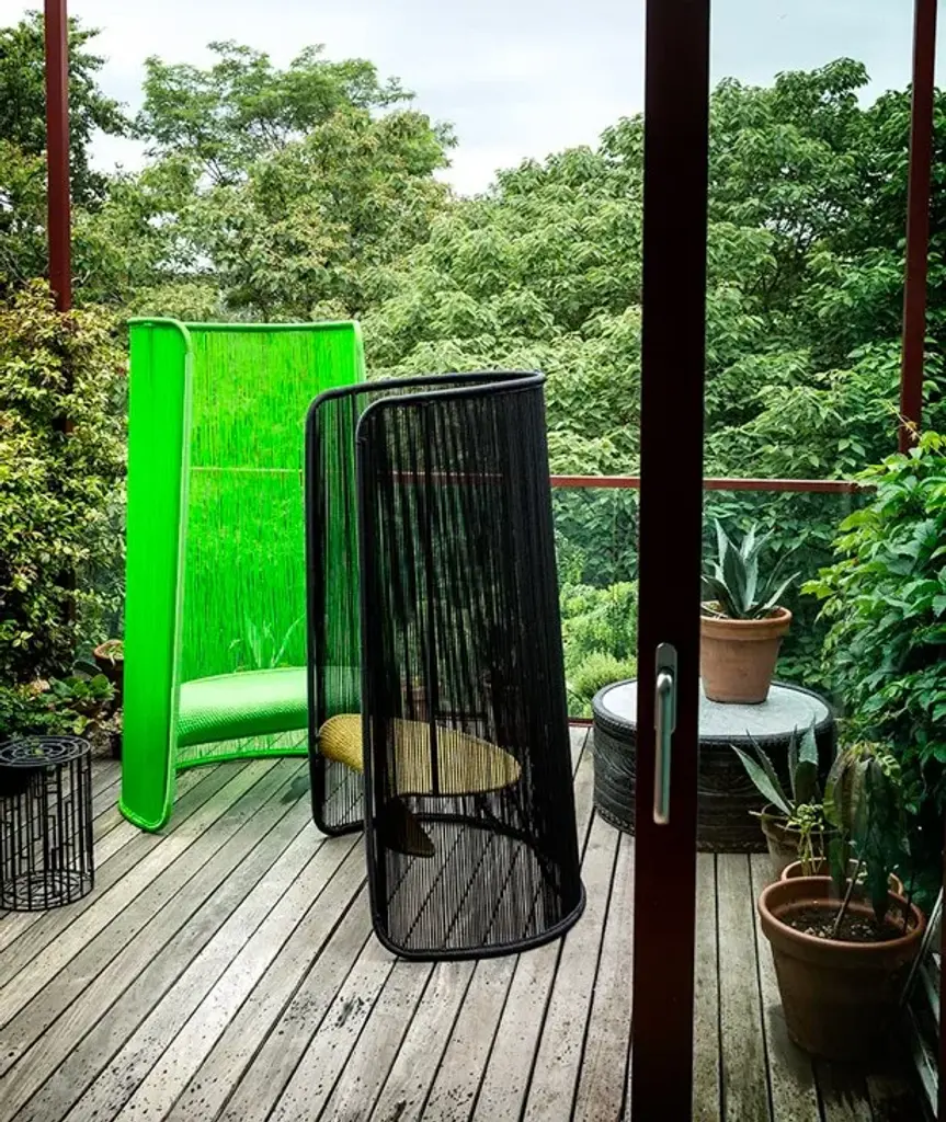 Husk is a seating made using woven threads normally used for fishing nets, the designs are all different and original, like their names. Handwoven,they are human in their imperfections and flaws.Frames are rust-proofed tubular steel and wrapped with polyethylene cord. Polyethylene cord in a range of colors is handwoven to frames. Polypropylene leveling glides.NOTES:- all items in this collection are entirely handmade; each piece is unique, and variations in colors, weaves and shapes are not considered defects- certain colors may fade in direct sunlight and although this will alter the product's appearance, it is not considered a defect.