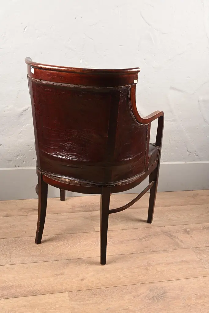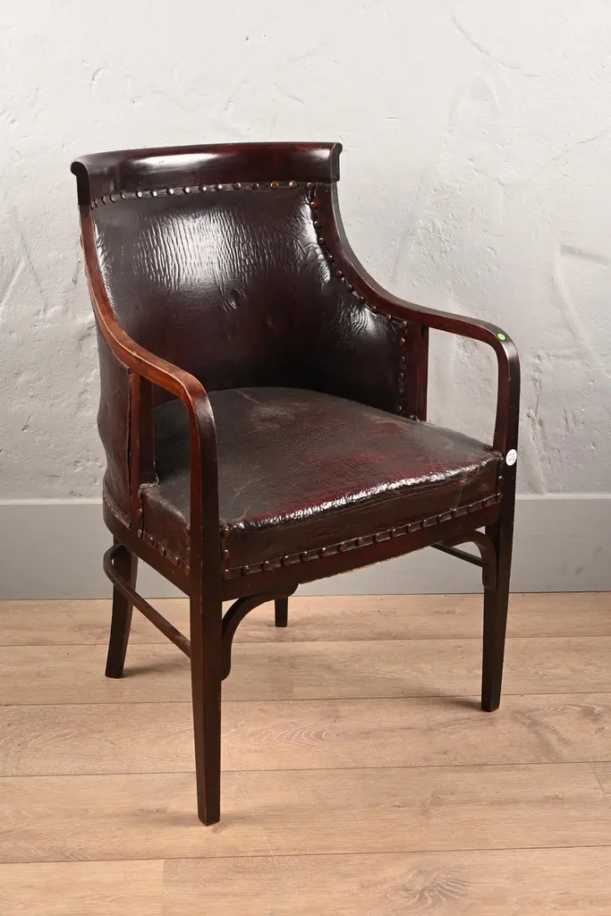 in the style of J. & J. Kohn, armchair with wide seat covered in leather. Viennese Secession circa 1880