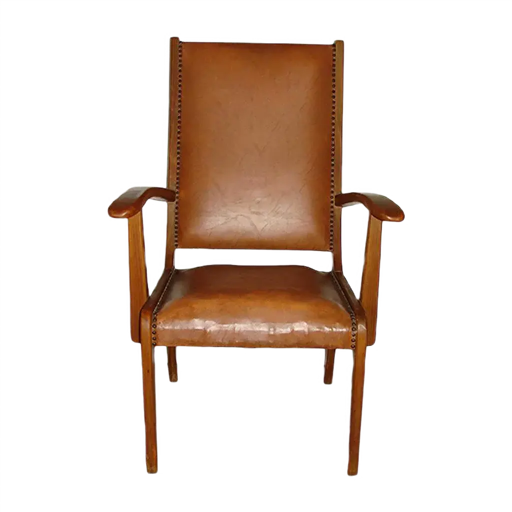 In The Style Of J. & J. Kohn, Armchair With Wide Seat Covered In Leather.