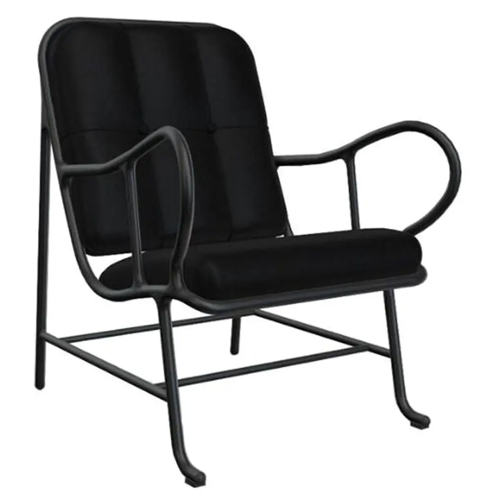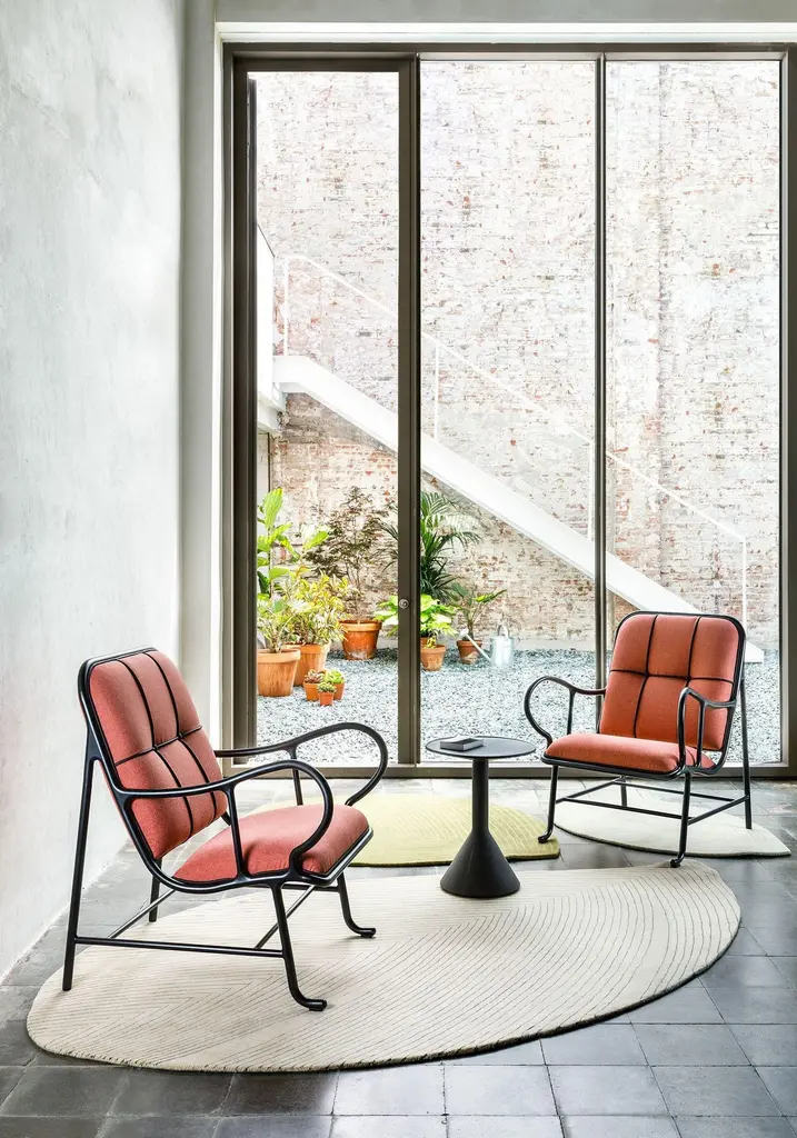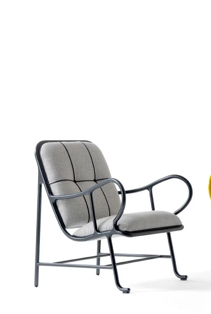 Indoor Gardenia Yello armchair by Jaime Hayon Dimensions: D 89 x W 70 x H 100 cm Materials: structure in cast aluminum and laminates in extruded aluminum. Powder coating in Alesta Anodic Black or in high-gloss yellow (RAL 1005). Monochrome structure and yellow leather.Also available outdoors.It has quality, personality, elegance and just the right amount of romanticism, and much versatility for the home as well as contract. The indoor collection includes an armchair and a sofa with a more refined image, which we present with new finishes and upholstery. The Gardenias Collection is the second largest collection by Jaime Hayon for BDIn 1972, a group of young architects and designers from Barcelona created BD with the aim of producing and marketing furniture and other objects for our projects, with complete creative freedom and with a criterion that has turned out to be quite different from the norm at companies in the sector, regarding both the shape and function.