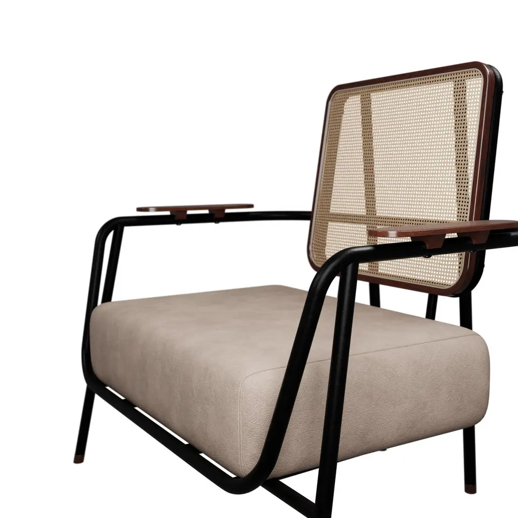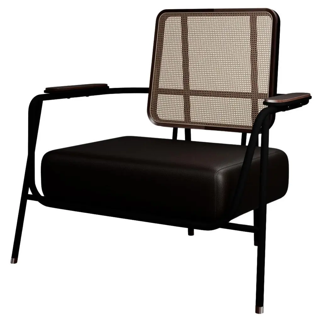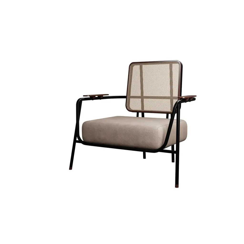 Murmurio's armchair with arm DUV sturdy iron structure provides a solid foundation, while the intricately woven rattan backrest, supported by an ashwood frame, adds a touch of natural beauty. The seat is upholstered in genuine leather, offering both comfort and a luxurious aesthetic.Each chair is a labor of love, crafted by skilled artisans who pay meticulous attention to detail. From the precise welding of the iron frame to the delicate weaving of the rattan, each component is a testament to the dedication and expertise of Murmurio.