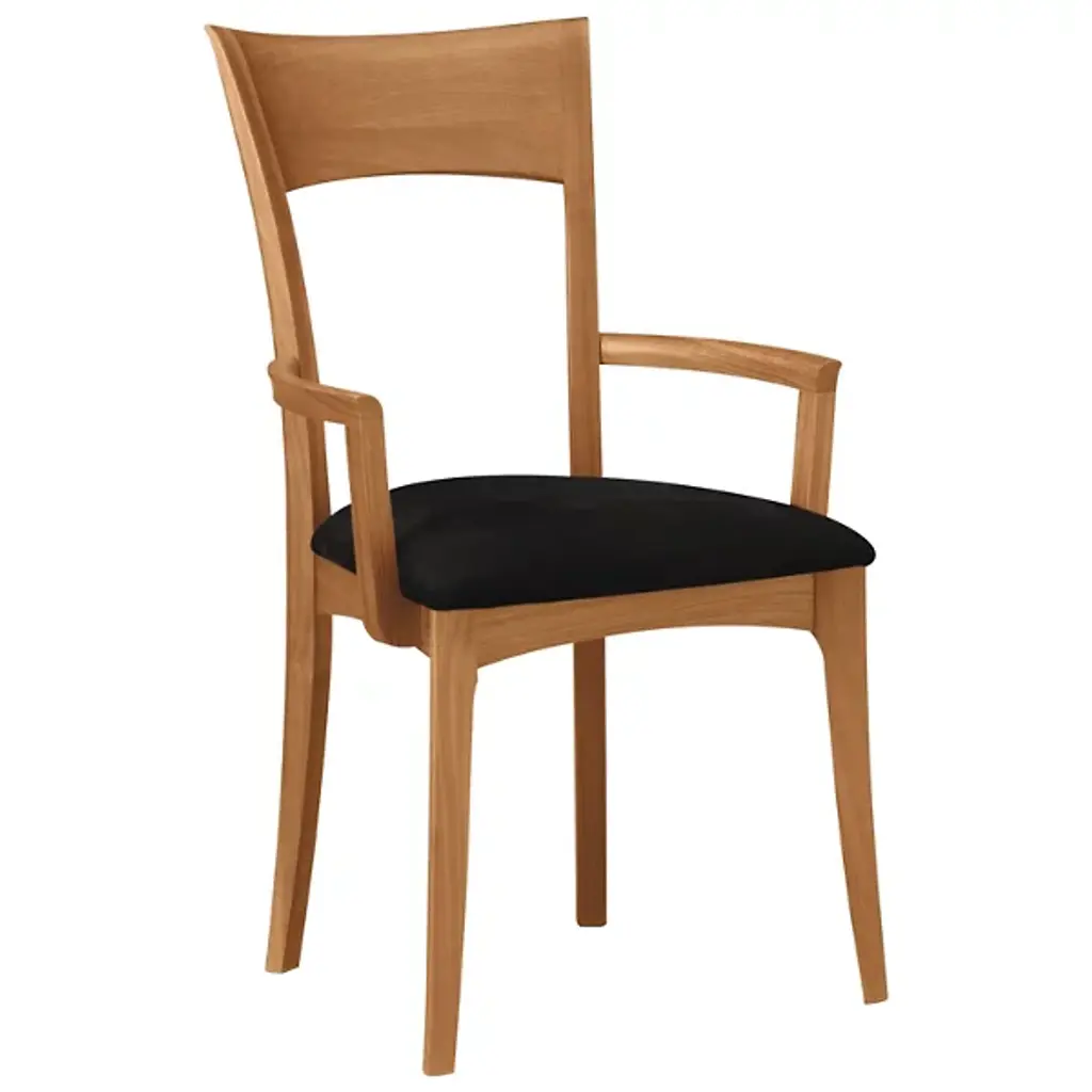 An open, elegant and comfortable chair for dinners formal or casual. The Copeland Furniture Ingrid Armchair features a gently curved frame made out of solid American black walnut or cherry wood. In addition to a range of wood finishes, you also have your choice of soft leather or microsuede upholstery on the seat.