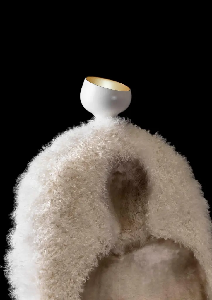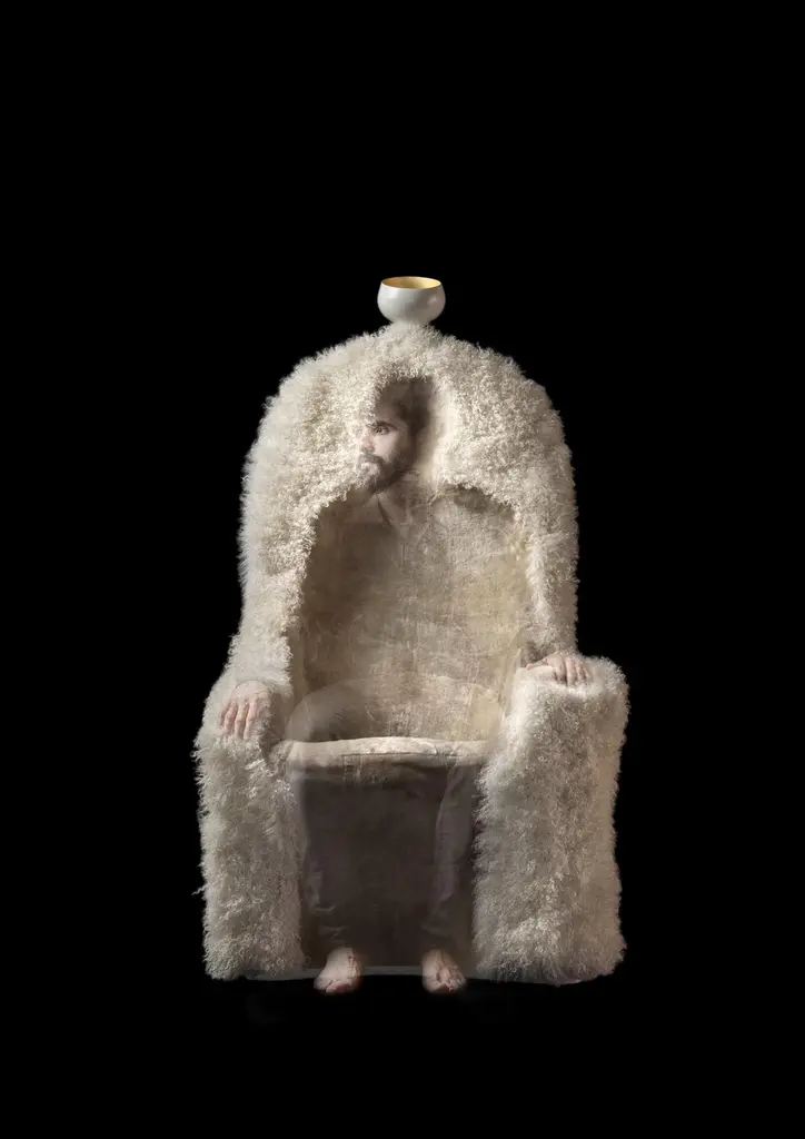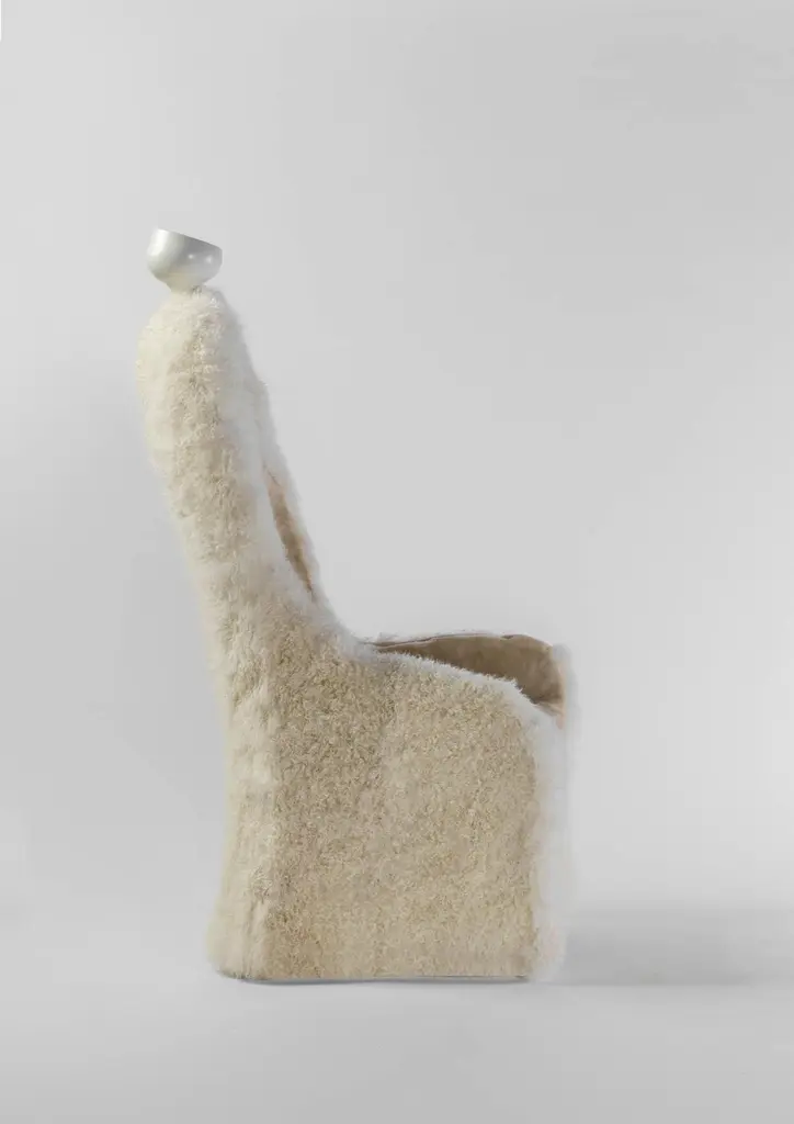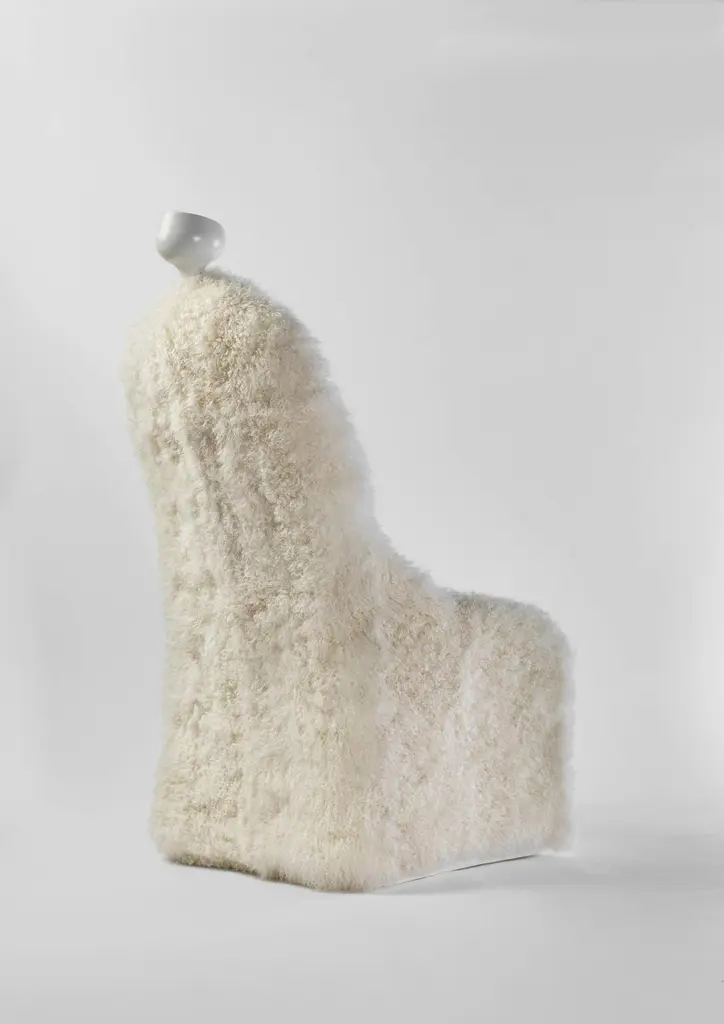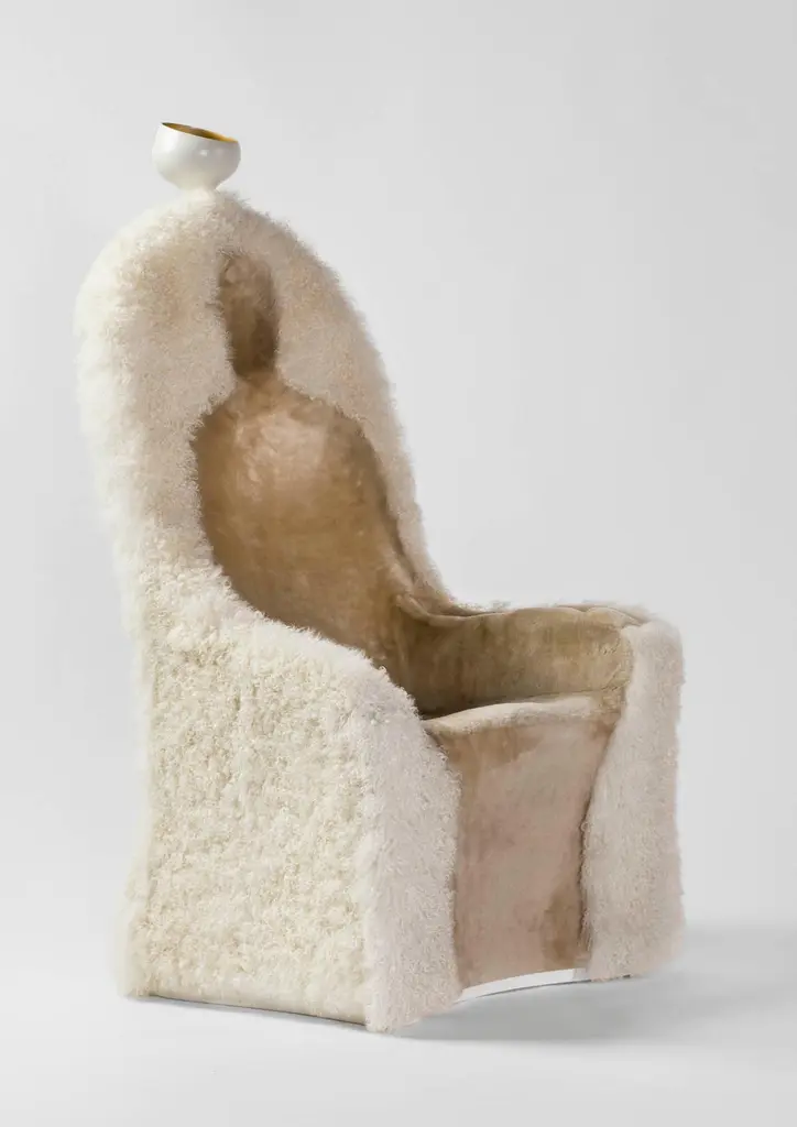 Invisible personage armchair and lamp, Salvador Dalí Limited edition of 20 unique piecesDesign inspired on an artwork by Salvador DalíDimensions: 80 x 90 x 150 H cmMaterials: Composite structure upholstered in sheepskin. Polyamide lacquered lamp. Rechargeable LED light source.Design inspired on an artwork by Salvador Dalí: ‘Singularities’ (1935). BDB.