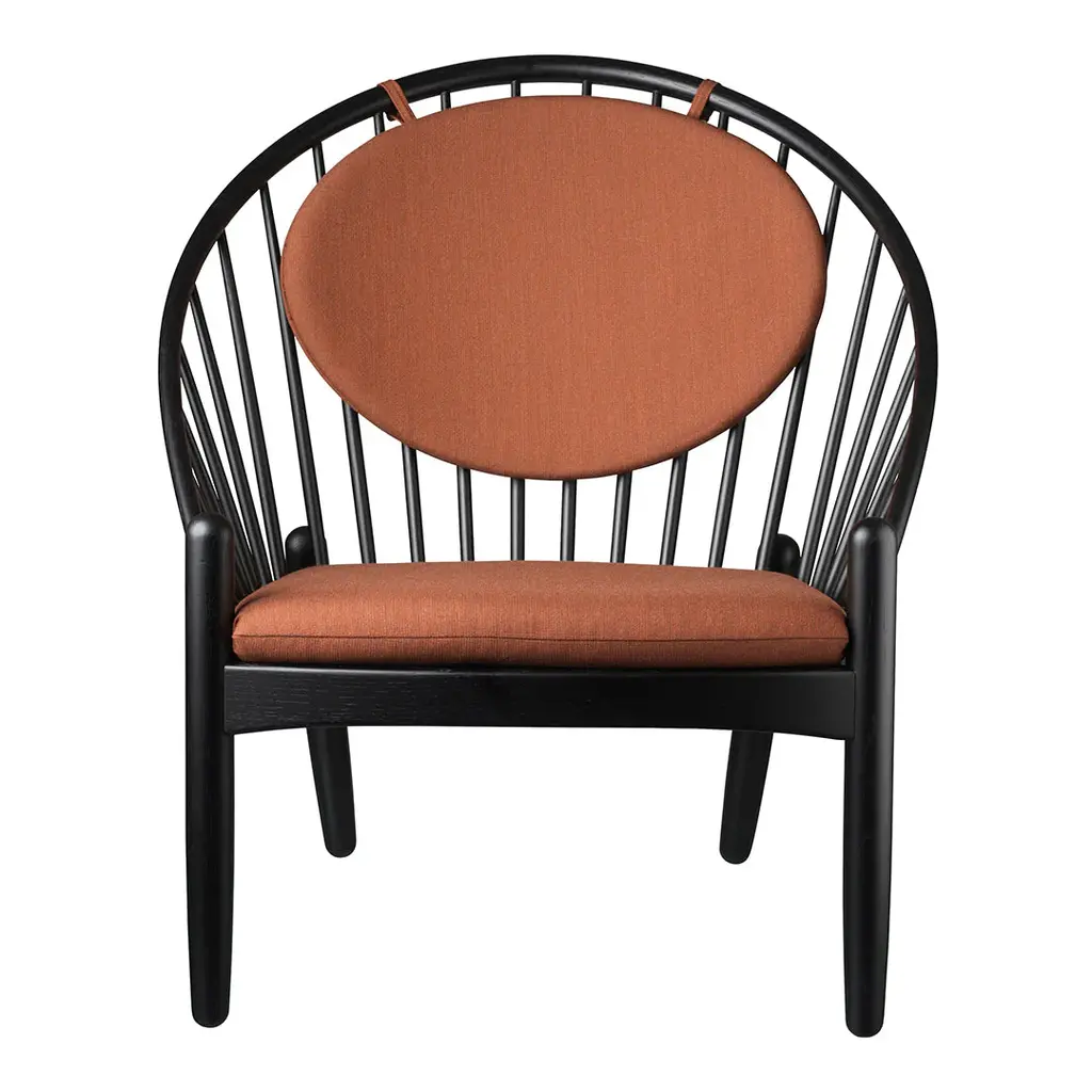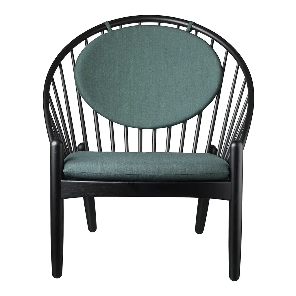 The armchair is one of the most important pieces of furniture in the home. It enjoys a special status in Danish furniture design. It is also a place where we can unwind and recharge. When the famous architect Poul Volther created the Jorna armchair, he was thinking of his wife – hence the name. Jorna Volther liked to relax with her knitting and long knitting needles – so he also made space for them. Now, just as then, there is space for knitting, a laptop or an iPad in the comfortable armchair. The seat and backrest are available in traditional plain variants such as dark grey, plum, navy blue and dark green. However, the chair also comes in more unconventional variants from Danish Art Weaving – in a blue with white stripes, and in the blue and red check ‘horse blanket', which is also seen on Borge Mogensen's sofas.