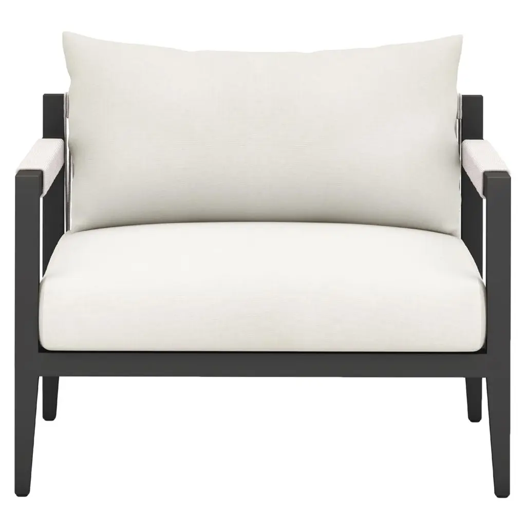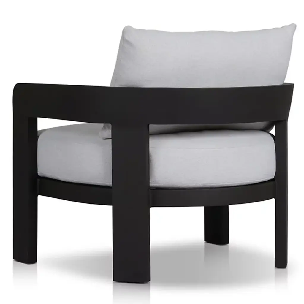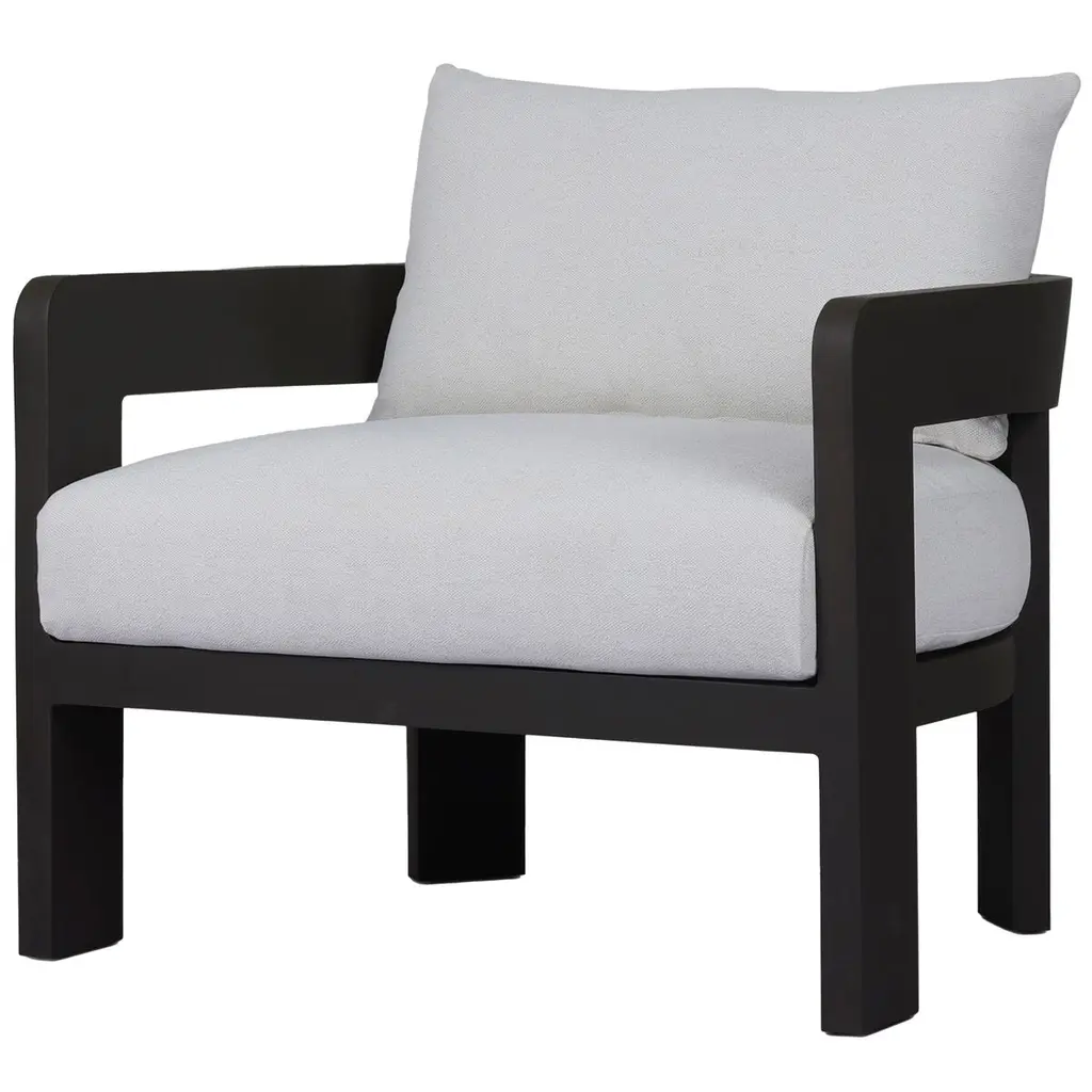 The Jackson Outdoor Armchair from Four Hands brings indoor comfort to outdoor spaces. Polypropylene fabric covers high-density foam and fiber batting, while aluminum framing ensures stability. The barrel back design hugs the body, offering support through curved lines. The foam core maintains its shape, while the metal base anchors the piece firmly. Each component meets the demands of outdoor use, though a protective cover keeps this chair pristine when not in use.
